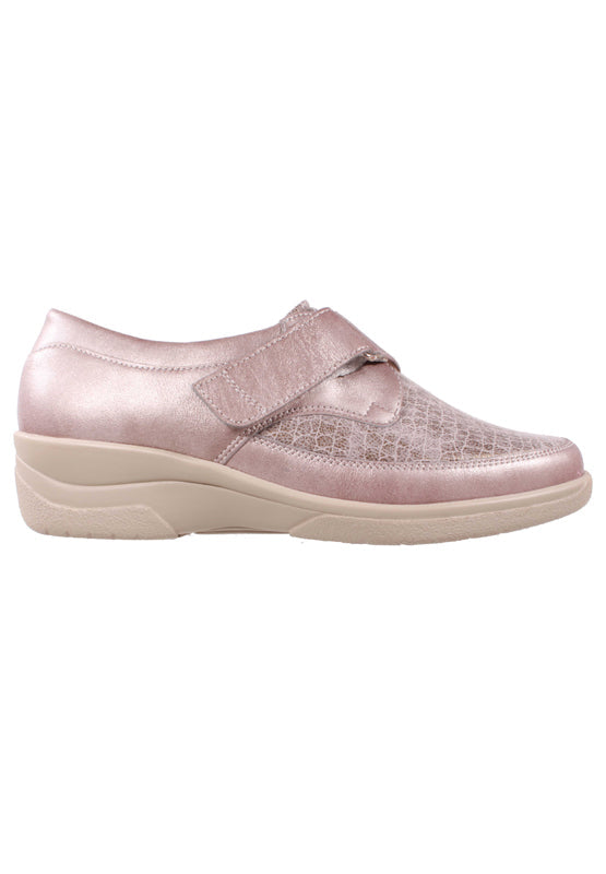 Sportiv, schick , praktisch! Der Klettverschluss am Spann ermöglicht Ihnen einen guten Halt und optimalen Sitz. Das weiche Stretch-Leder passt sich perfekt dem Fuß an und verleiht Ihnen einen absoluten Tragekomfort. Durch das Wechselfußbett ist dieses Modell ideal für Einlagenträger geeignet und die Sohle ist mit einem die Luftpolster ausgestatte, so das jeder Ihrer Schritte abgedämpft wird. Dazu verleiht der Metallic-Effekt dem Schuh das gewisse "Etwas"!