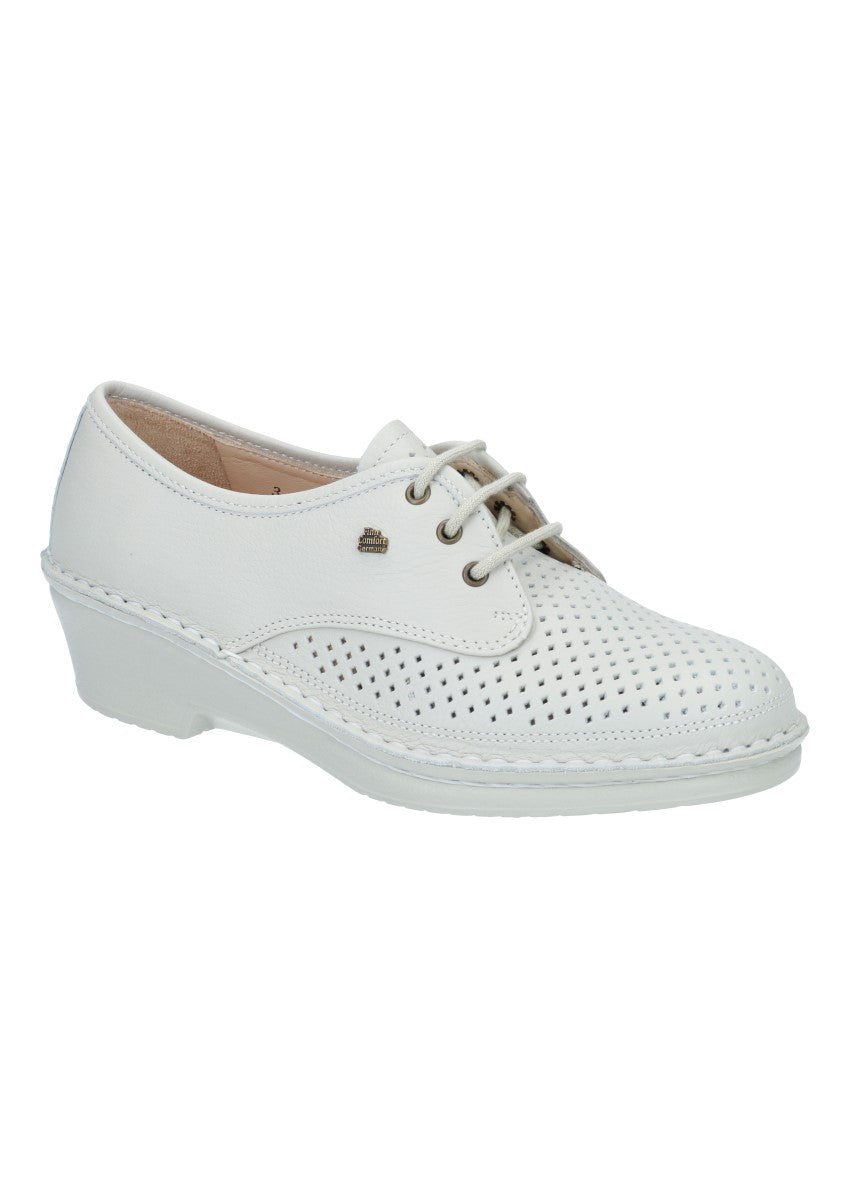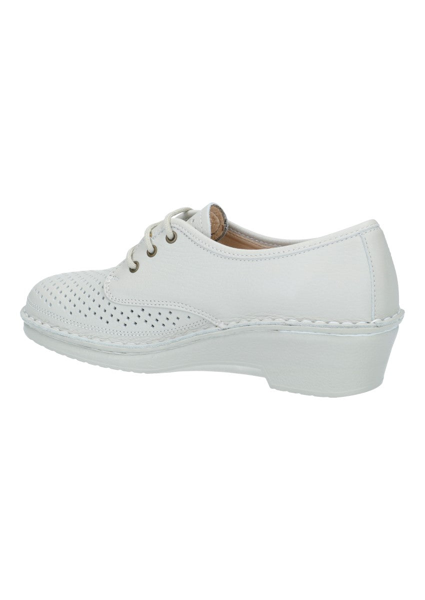 Schicker und luftiger Halbschuh mit kurzer Schnürung für eine gute Anpassung. Das wechsekbare Fußbett ermöflicht eine individuelle Einlage reinzulegen.