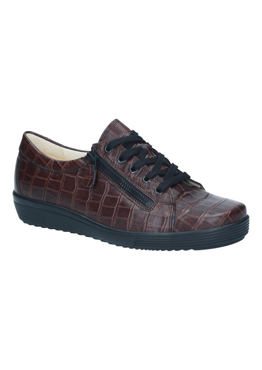 Modischer Halbschuh mit wechselbarem Fußbett.