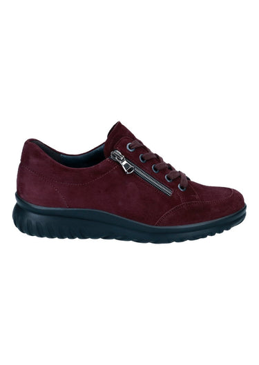 Schicker, modischer Damenhalbschuh der durch die lange Schnürrung am Spann Ihnen den optimalen Halt bietet und durch den seitlichen Reiußverschluss Ihnen das Ein - uns Aussteigen erleichtert.