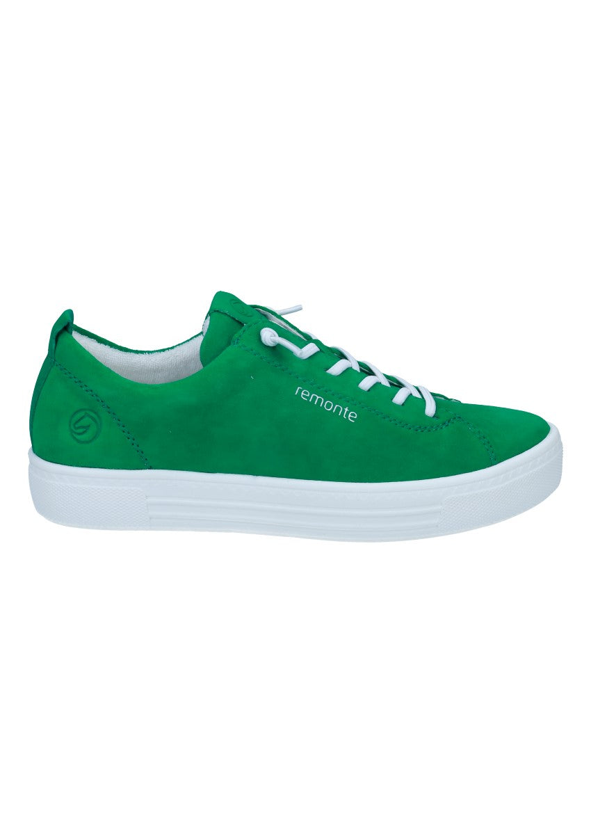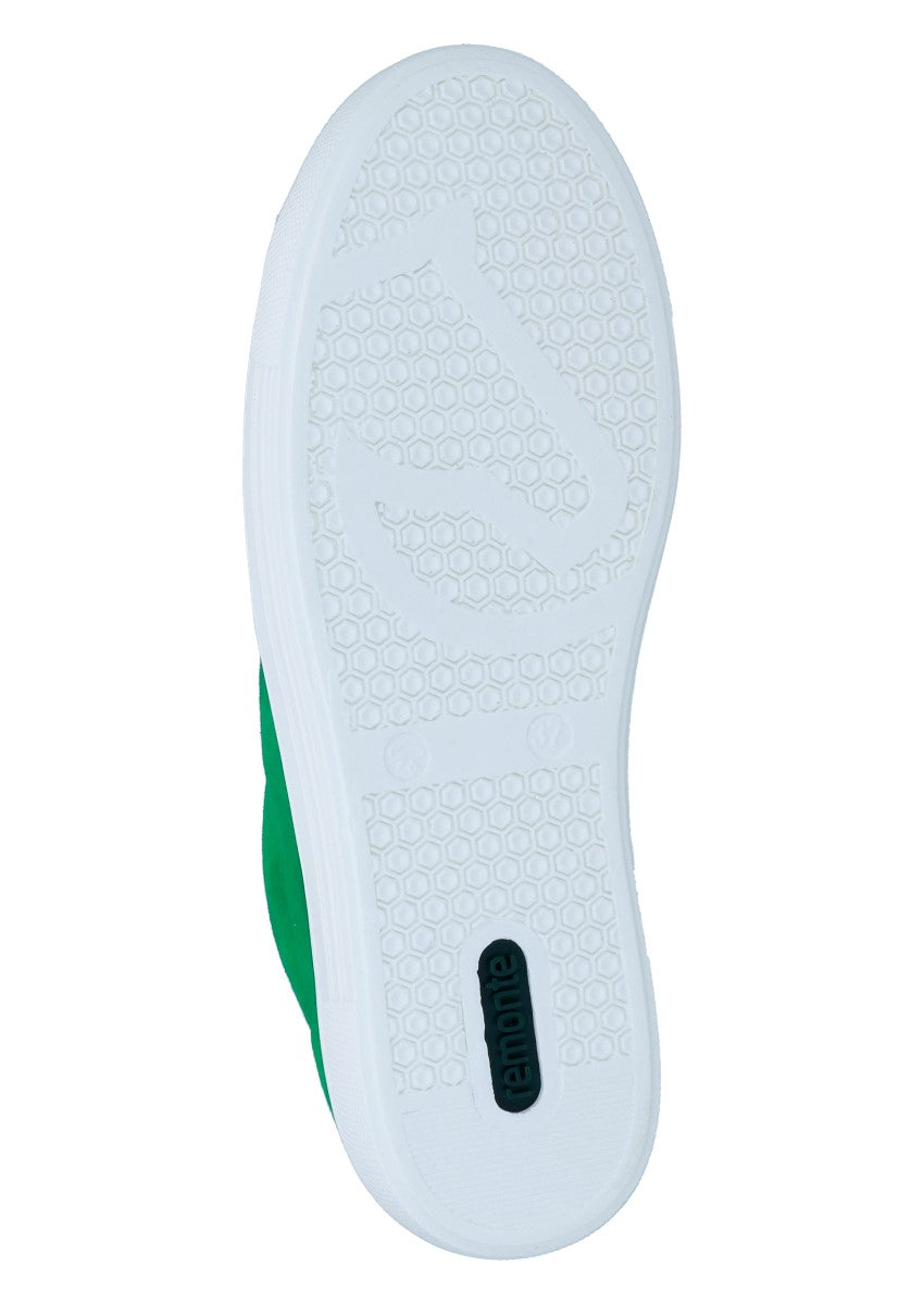 Modischer Remonte Sneaker für Damen der sich als perfekter Alltagsbegleiter in Smaragdgrün eignet. Zusätzlich sorgt die Schnürung für eine gute Fußanpassung. Das Wechselfußbett ist nicht nur sehr weich sondern ermöglicht auch eine individuelle Einlage reinzulegen. Das Modell ist mit leichtem Microvelour gefüttert, das atmungsaktiv ist.