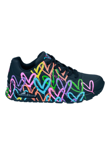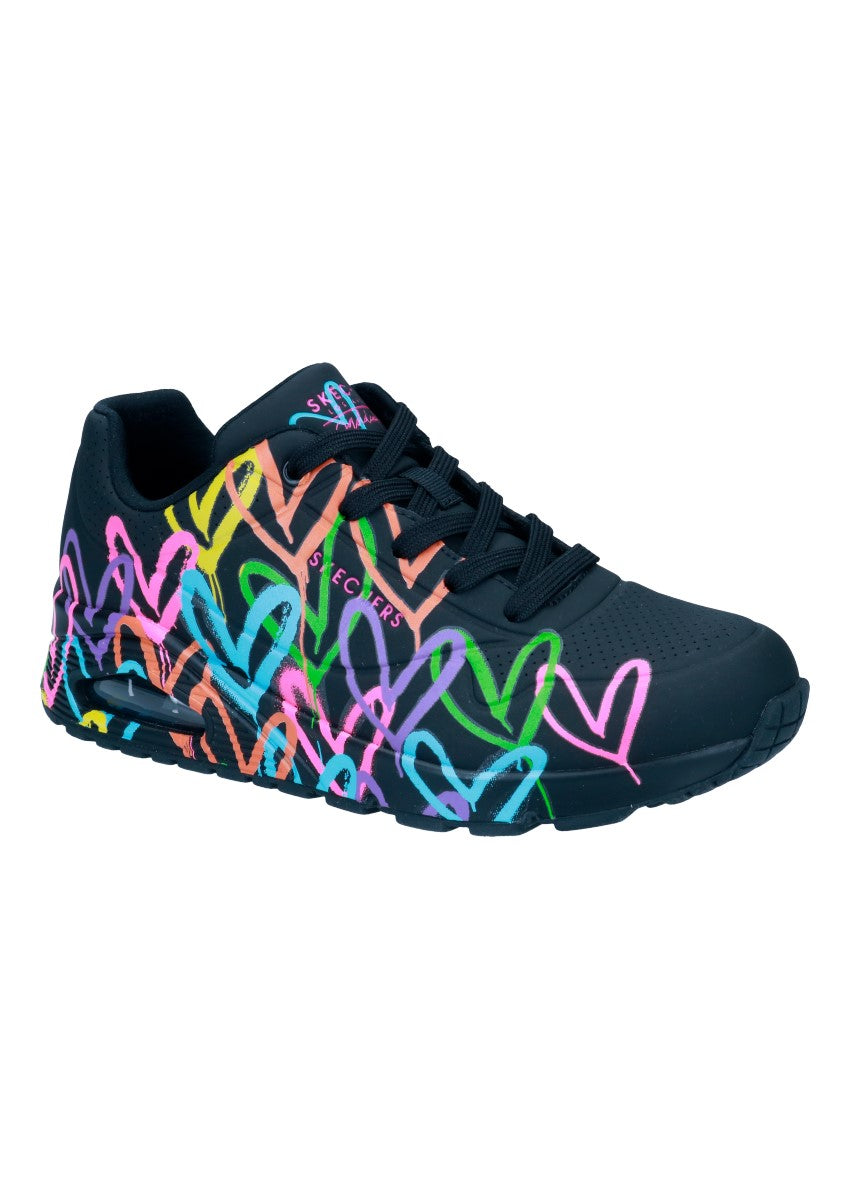 Perfekter Tragekomfort, unterstützende Form und ein angesagtes Design - das bieten die Sneaker Uno - Highlight Love. Dieser modischer Schnürer ist mit dem charakteristischen Herzmotiv des Künstlers James Goldcrown bedruckt. Der Sneaker ist ausgestattet mit einer Air-Cooled Memory Foam Innensohle und einer sichtbaren, luftgepolsterten Skech-Air Zwischensohle.
