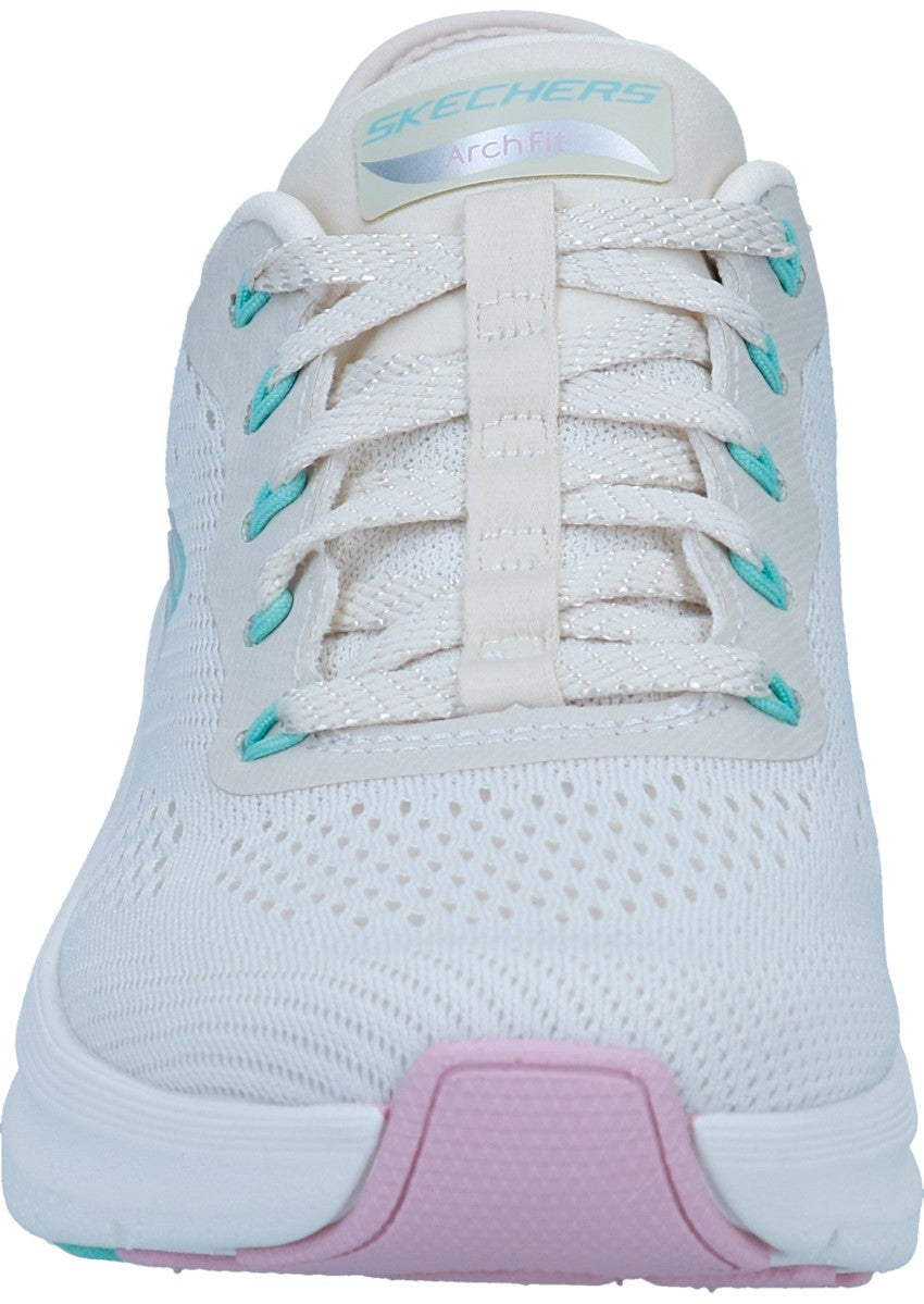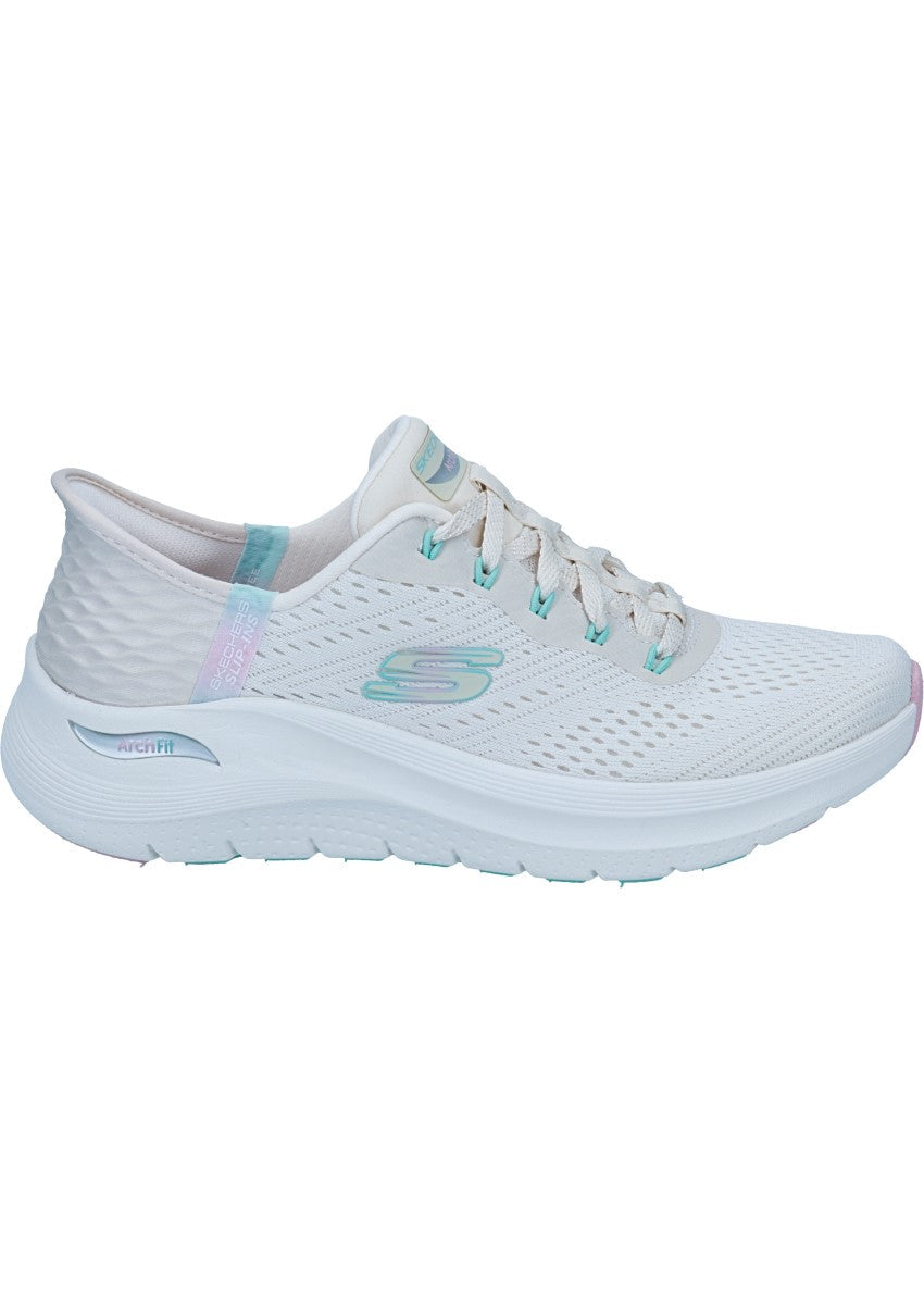 Erleben Sie den ultimativen Gehkomfort mit den Skechers Slip-Ins: Arch Fit Easy Chic in der trendigen Farbkombination Weiß Natural-Pink. Dieses Modell vereint modisches Design mit innovativer Funktionalität - ideal für den Alltag, lange Spaziergänge oder aktive Tage auf den Beinen.
