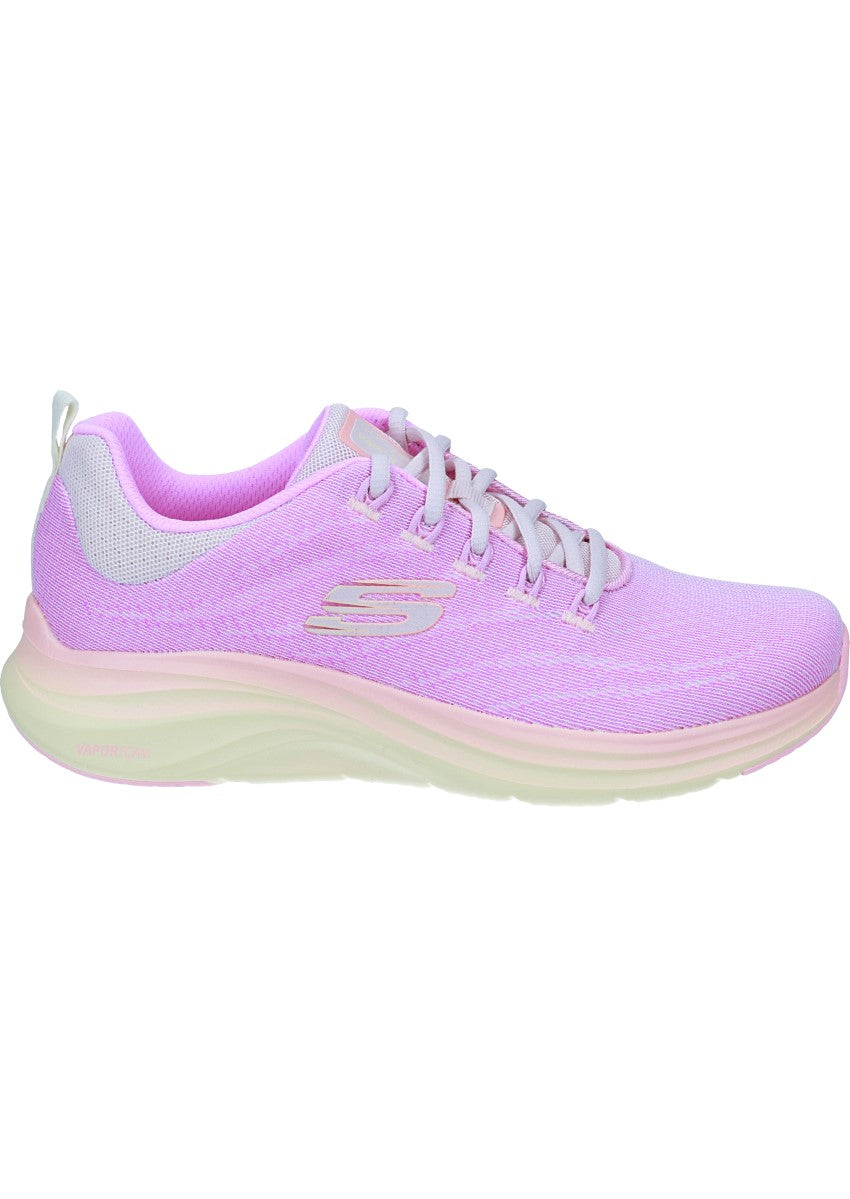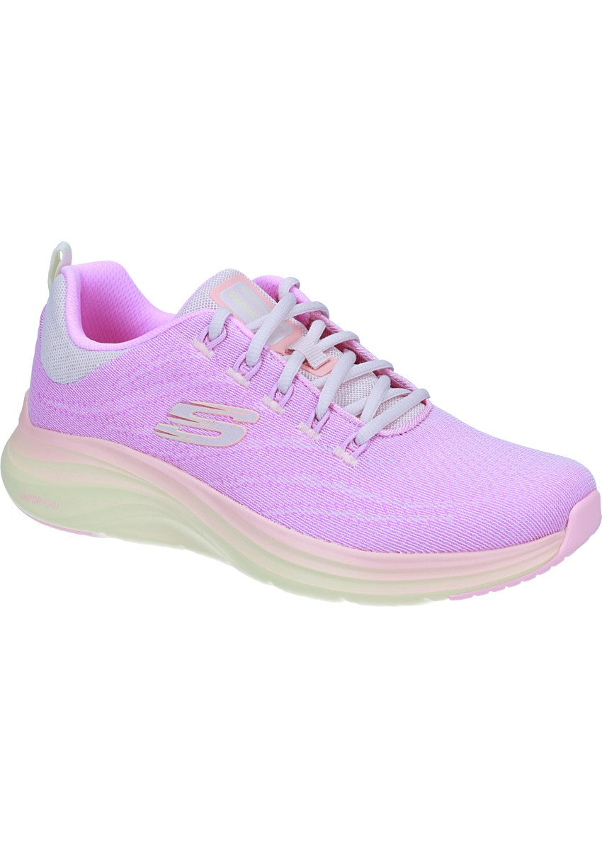 Mit dem Skechers Vapor Foam - Summer Journey setzt du auf sportlichen Stil und angenehme Leichtigkeit. Die frische Farbkombination Pink/Multi bringt sommerliche Energie in jeden Schritt, während das atmungsaktive Mesh-Obermaterial mit farbigen Details für optimalen Tragekomfort sorgt - ob beim Spaziergang, auf Reisen oder im Alltag.