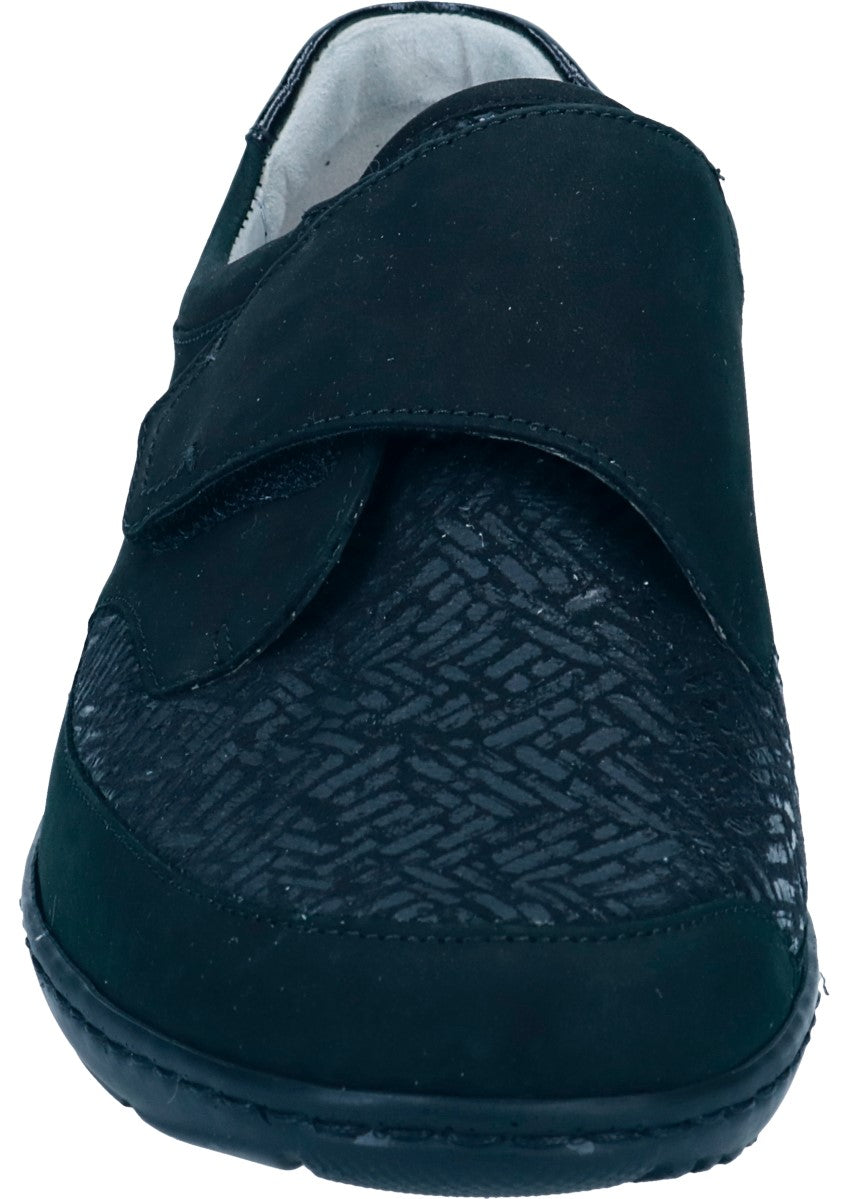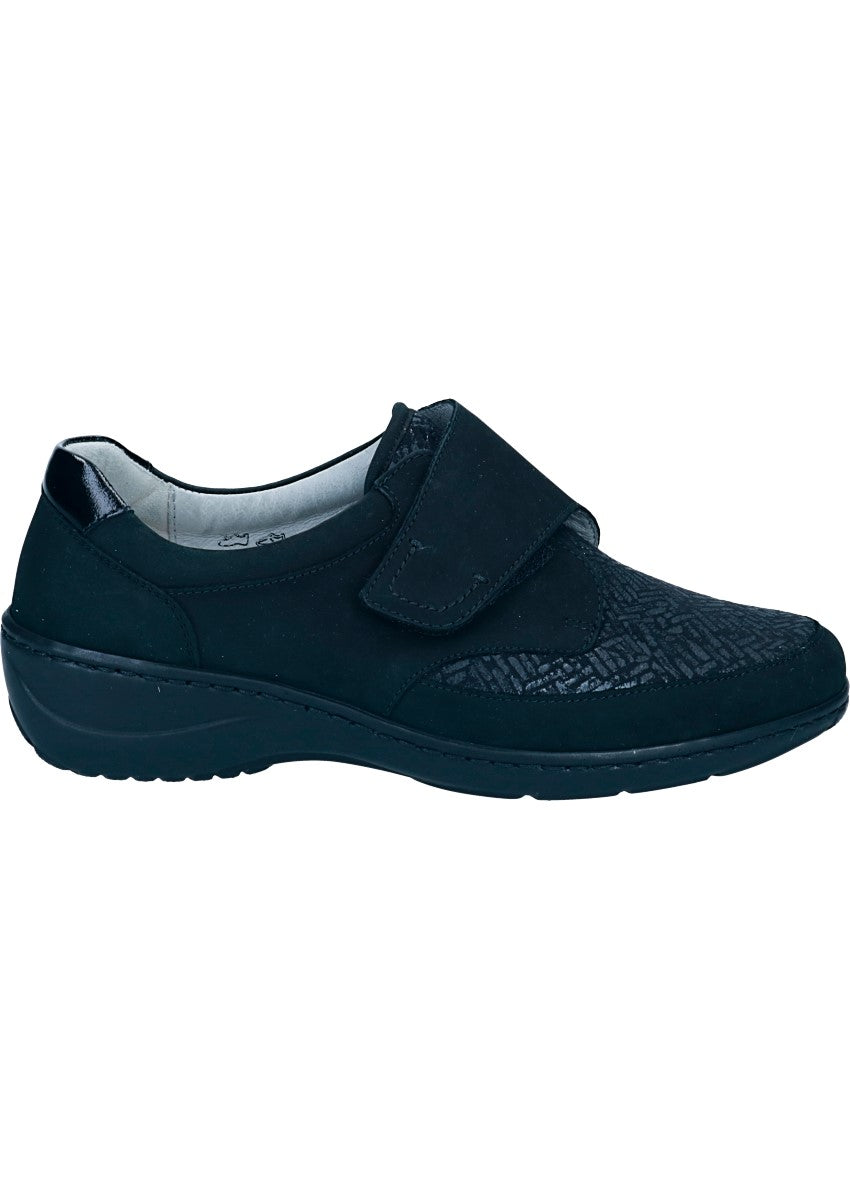 Dieser sportliche Halbschuh in Schwarz lässt sich dank des Klettverschlusses individuell an den Fuß anpassen. Die weiche Luftpolstersohle sorgt für ein besonders angenehmes Laufgefühl - ideal für lange Tage. Das wechselbare Fußbett macht ihn auch perfekt für orthopädische Einlagen.