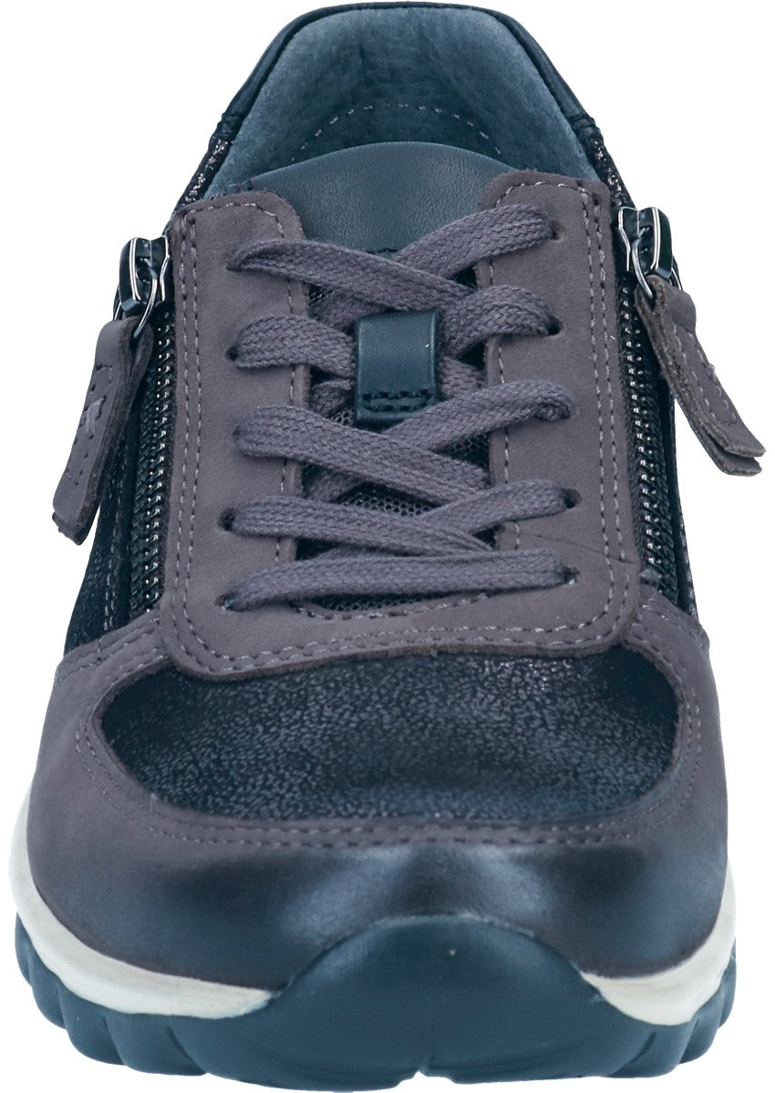 Der Gabor Rollingsoft Sneaker ist die ideale Wahl für alle, die Wert auf Komfort, Qualität und sportlichen Stil legen. Die speziell entwickelte Rollingsoft-Sohle unterstützt ein natürliches Abrollen und entlastet die Gelenke - ideal für lange Tage auf den Beinen. Das weiche Obermaterial schmiegt sich angenehm an den Fuß und sorgt zusammen mit dem leichten Innenfutter für ein rundum gutes Tragegefühl. Das herausnehmbare Fußbett macht den Schuh auch für eigene Einlagen geeignet. Ein integrierter Stabilisator sorgt für sicheren Halt und gute Führung bei jedem Schritt. Die flexible, rutschhemmende Sohle gibt zusätzlich Sicherheit und sorgt für ein entspanntes Laufgefühl. Ob im Alltag oder in der Freizeit - dieser Sneaker ist ein zuverlässiger Begleiter für alle, die aktiv unterwegs sind und nicht auf Bequemlichkeit verzichten wollen.