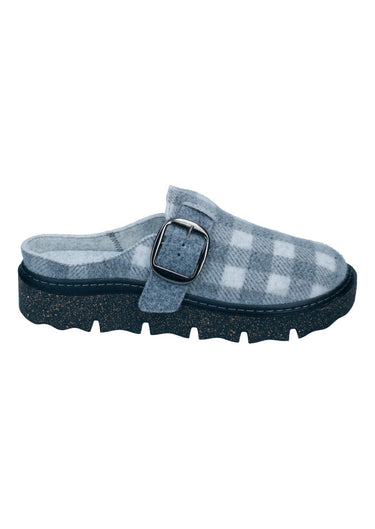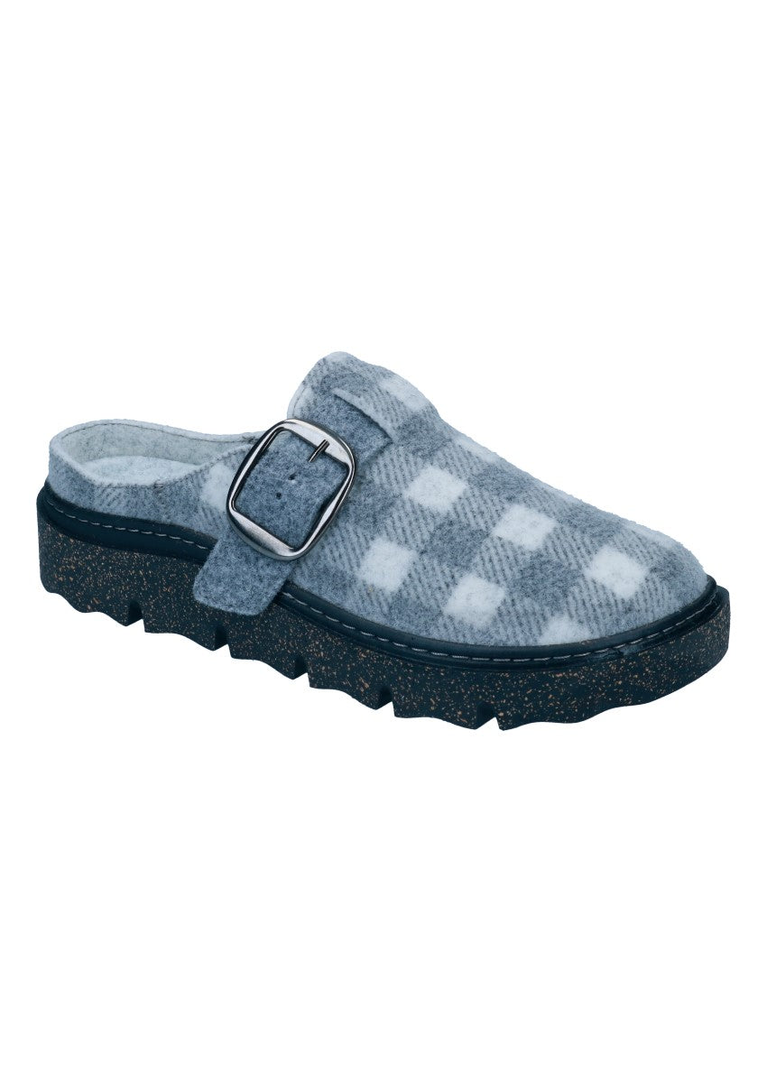 Bequemer Hausschuh mit wechselbarem Fußbett.