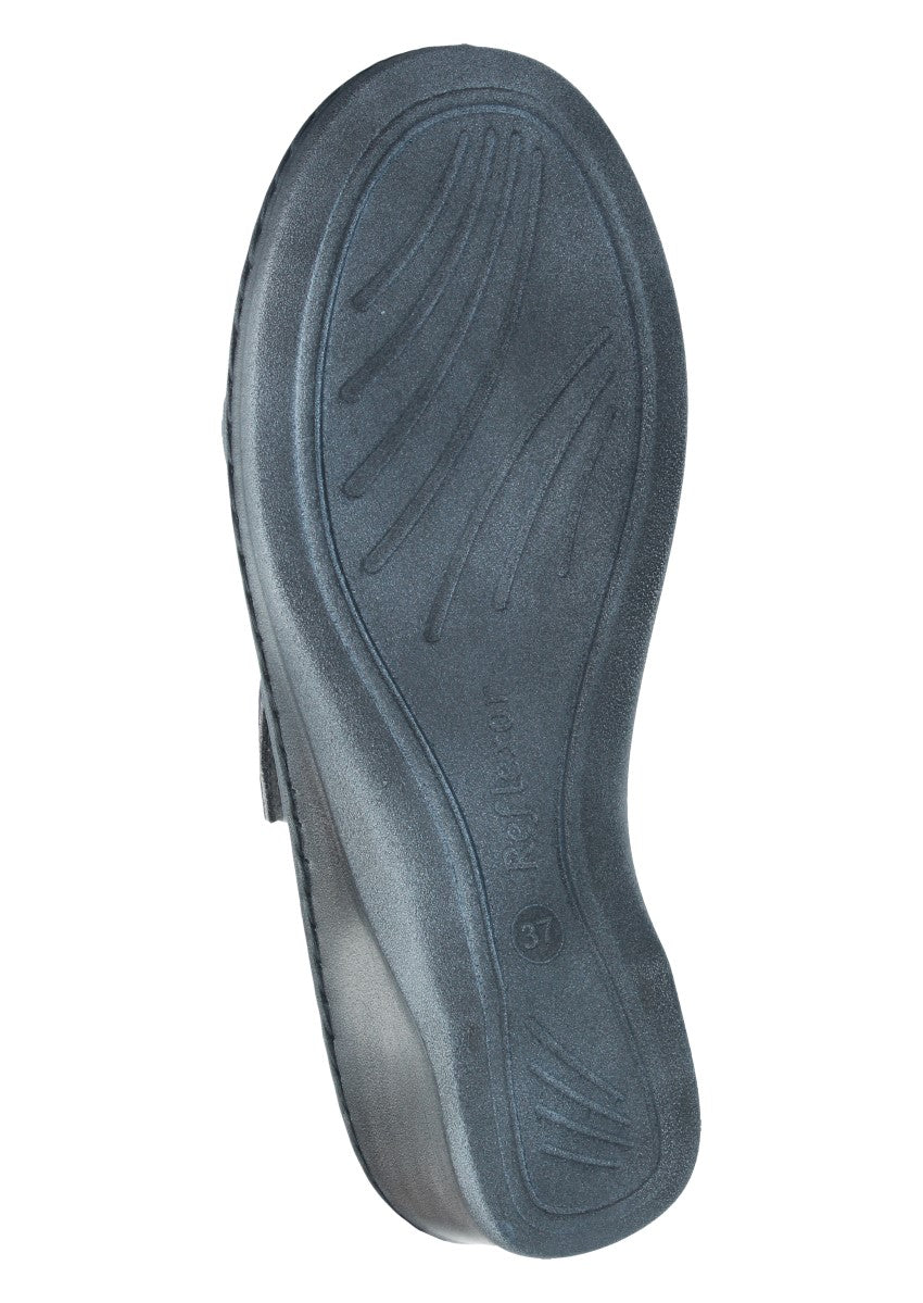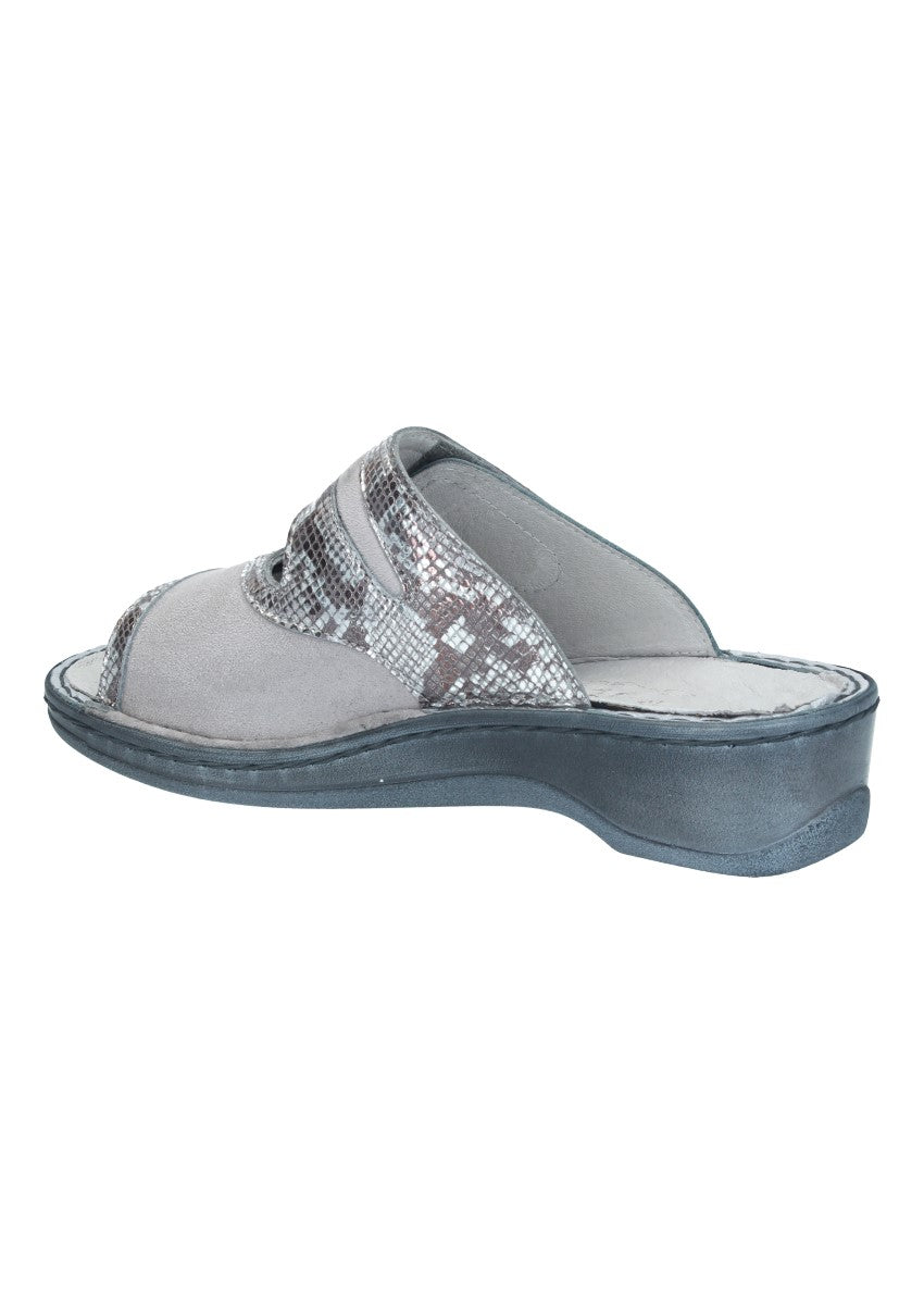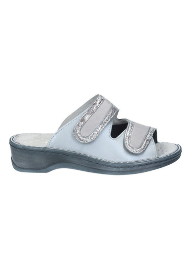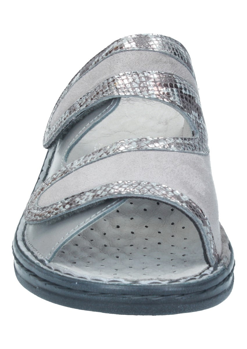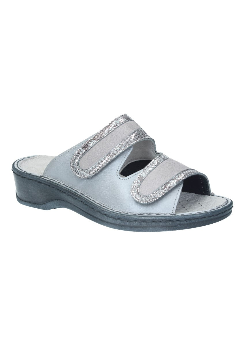 Schicke Pantolette mit Klettverschluss am Spann. Durch das wechselbare Fußbett ist dieser Schuh auch gut für Einlagenträgerinnen geeignet.