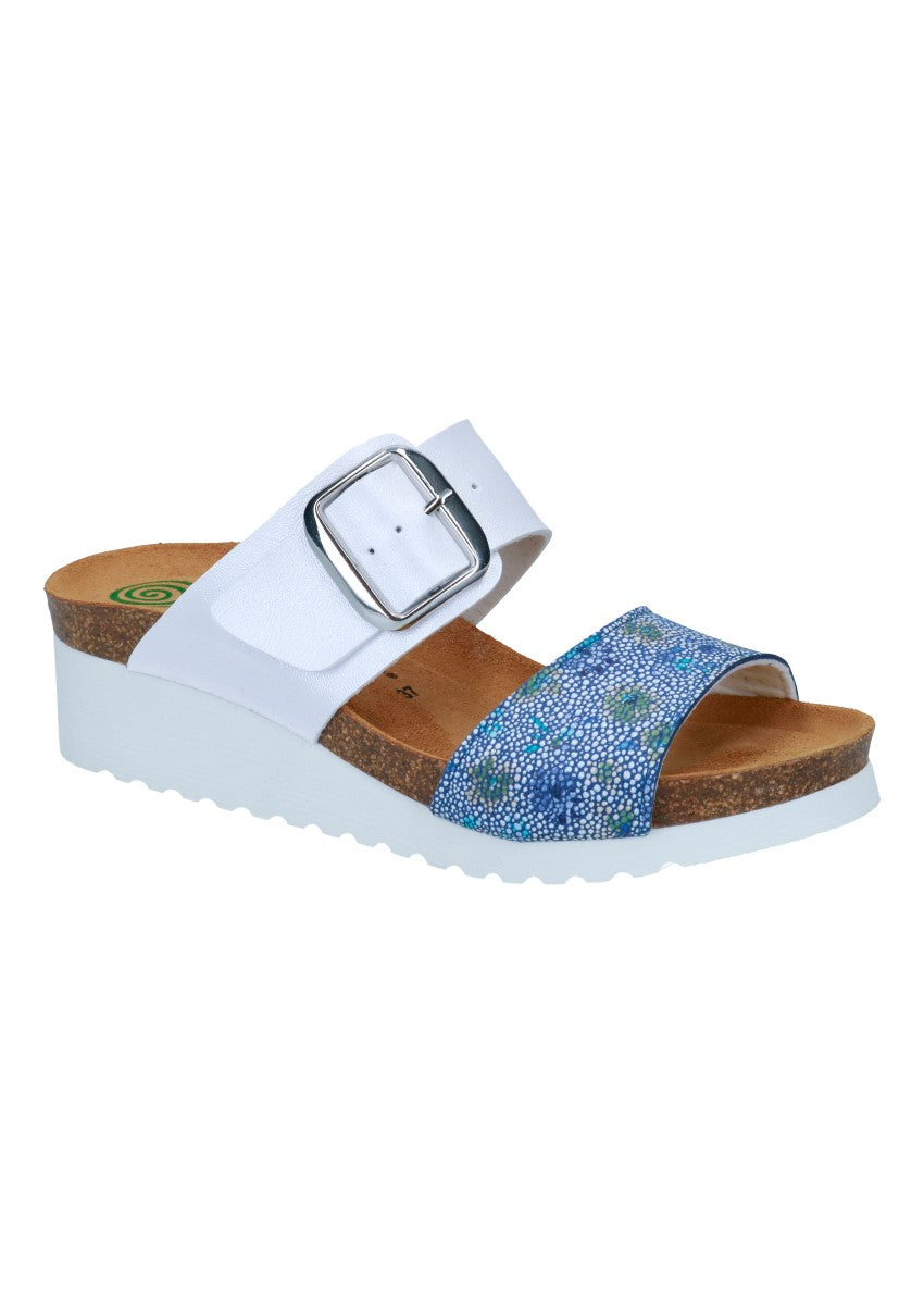 Modischer und komfortable Pantolette, die sich über die verstellbare Schnalle am Spann gut anpassen lässt.