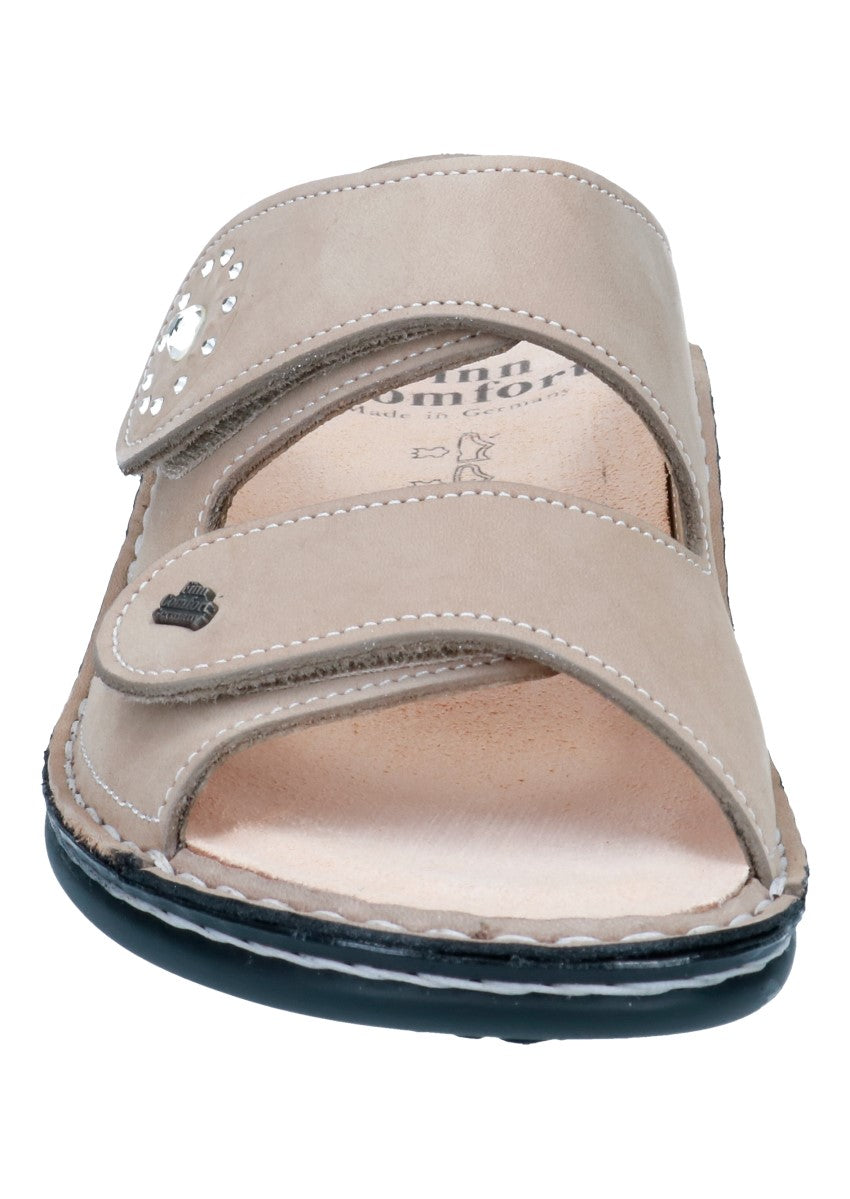 Damenpantolette mit Absatz und zwei verstellbaren Klettverschlüssen die Ihrem Fuß guten Halt und optimalen Sitz bieten.