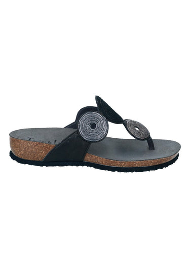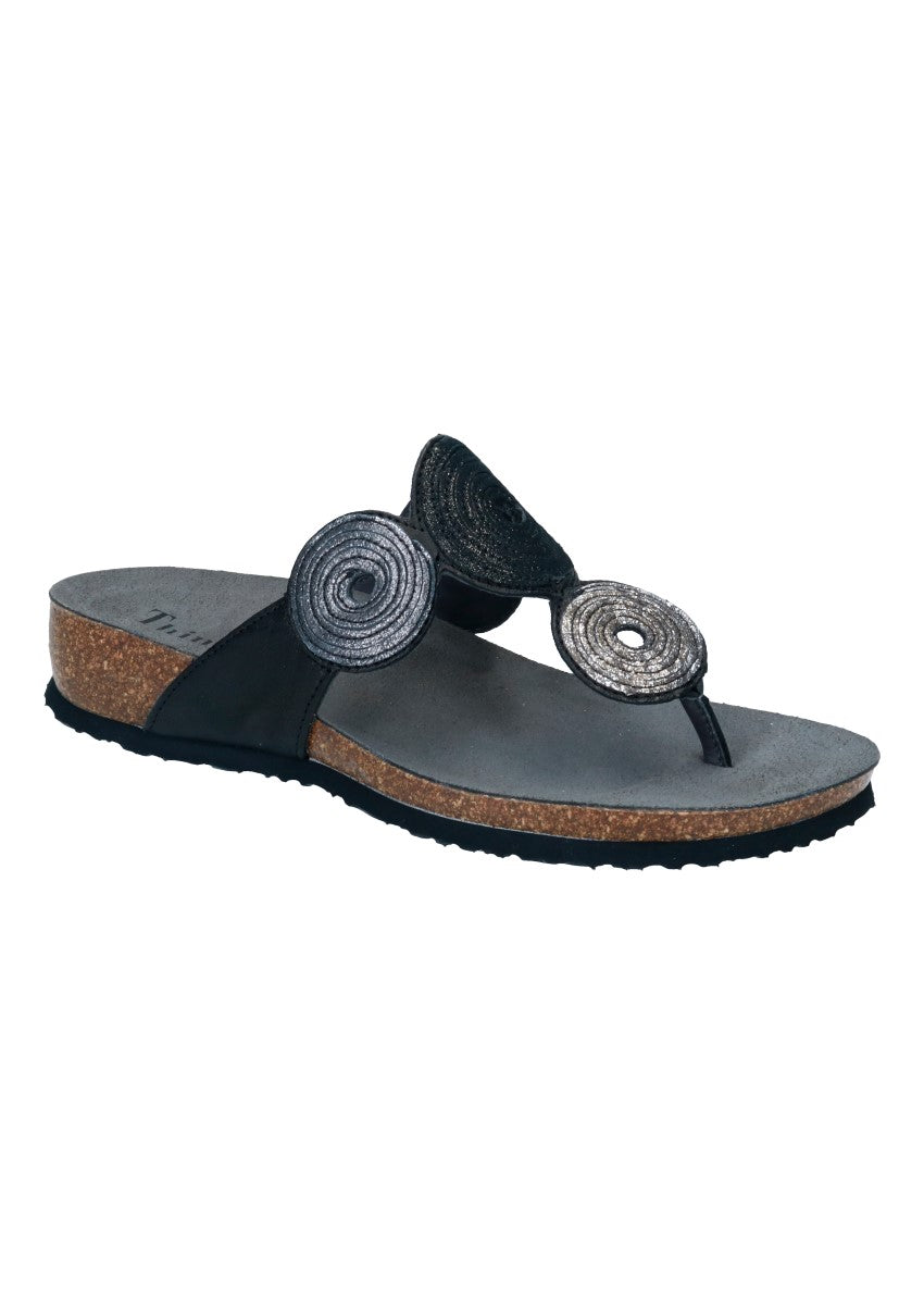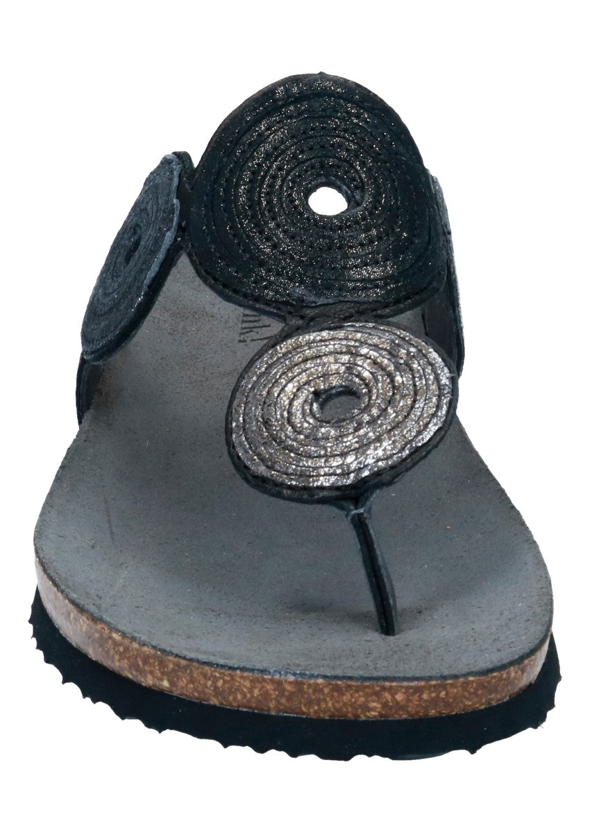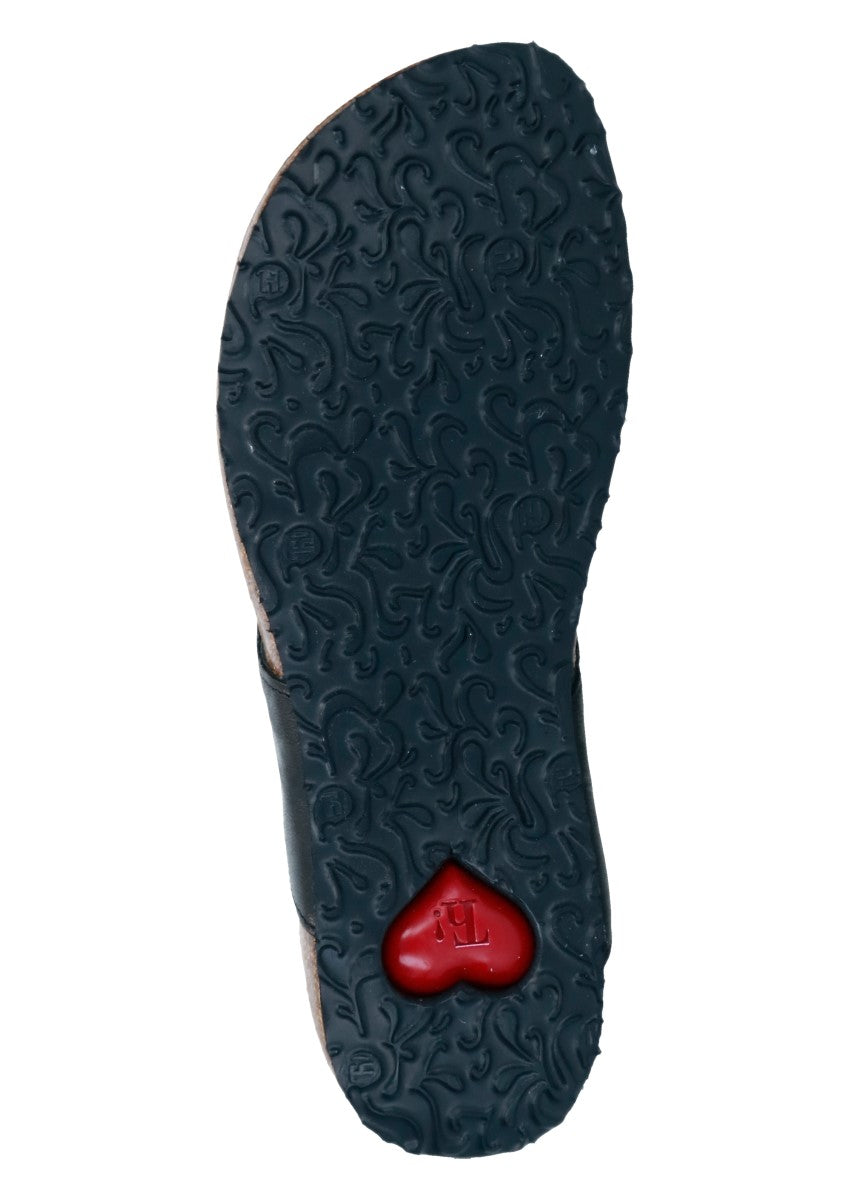 Modische, moderne und peppige Zehenstegpantolette aus dem Hause "Think". Think-Schuhe bestehen aus den Einsatz natürlicher Materialien und Farben und entsprechen höchsten Qualitätsansprüchen.