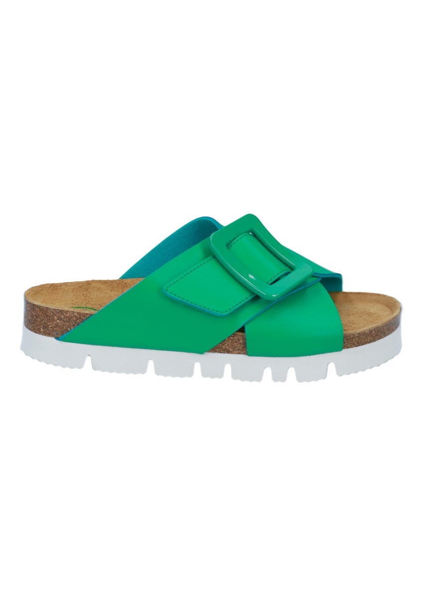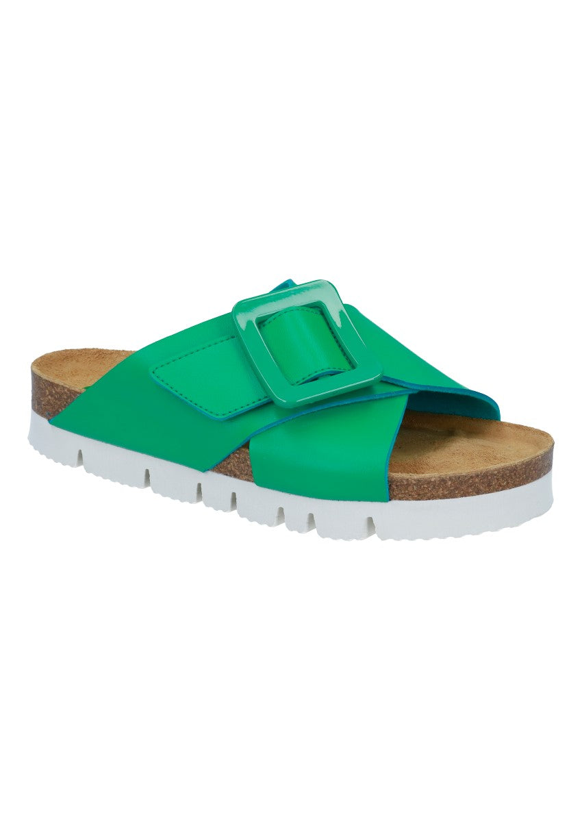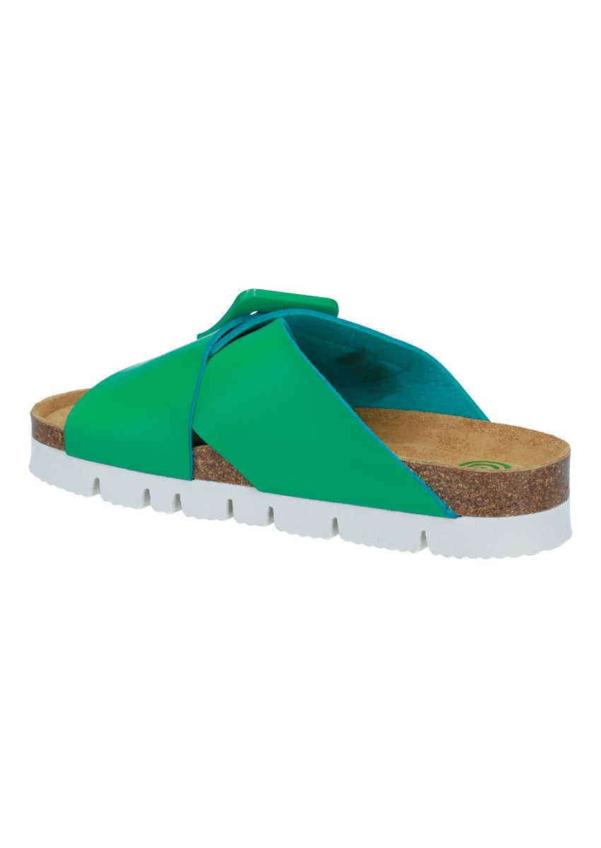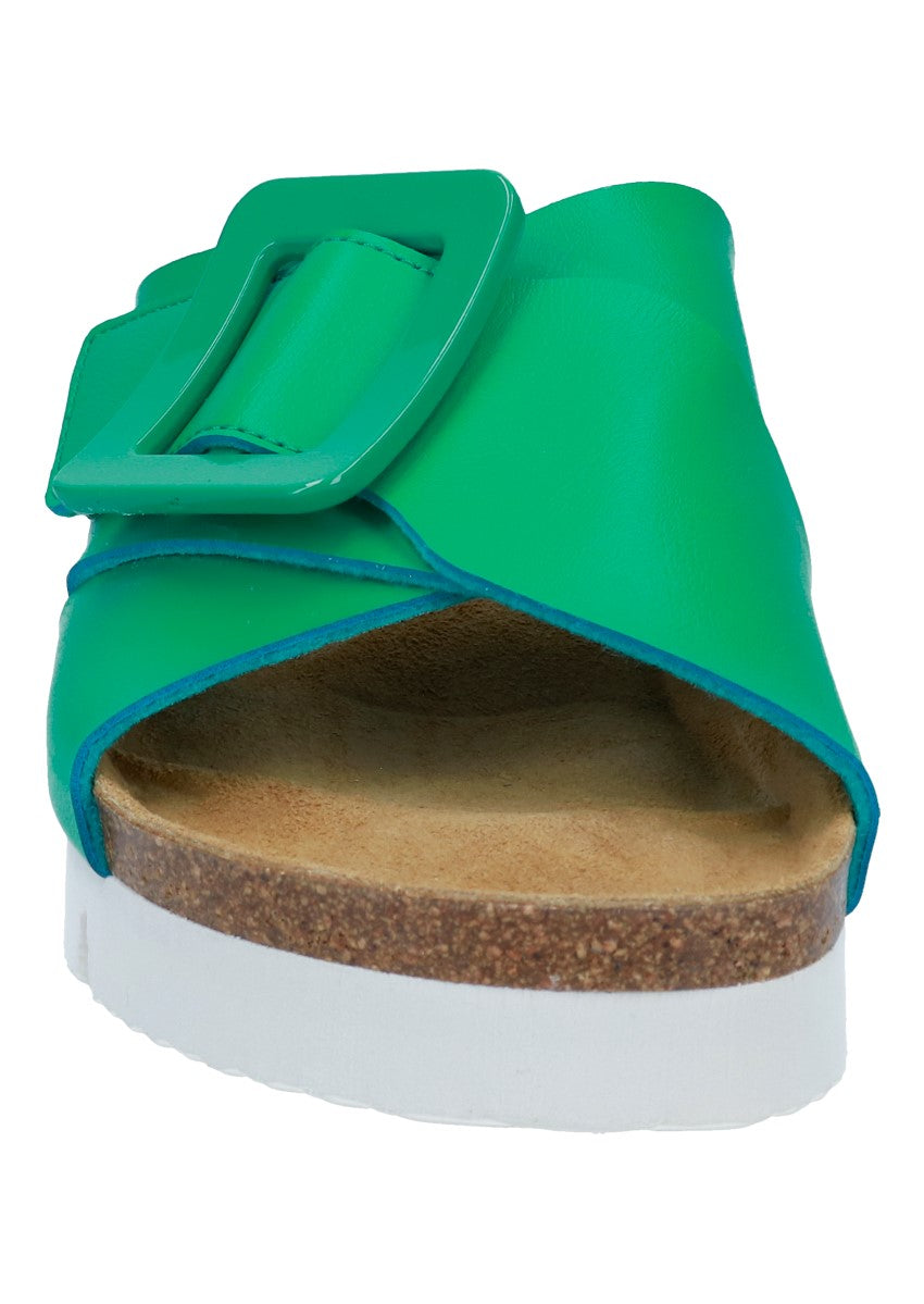 Modische Pantolette mit Klettverschluss und weichem Fußbett.