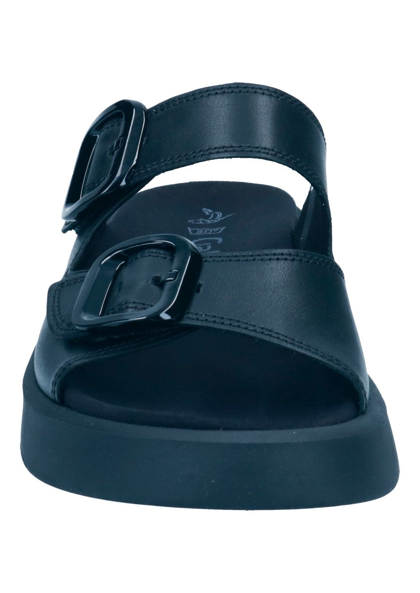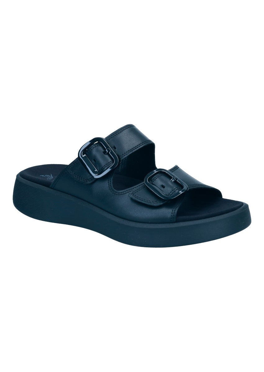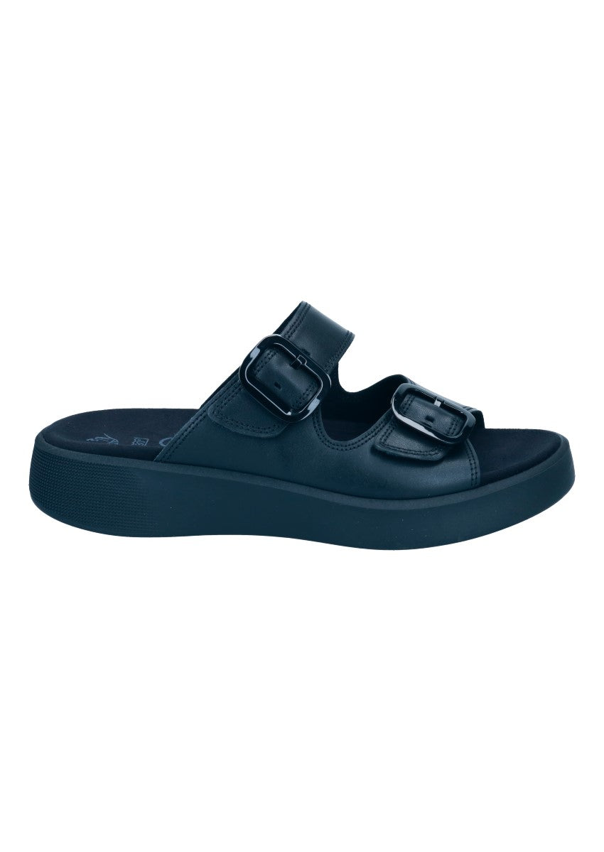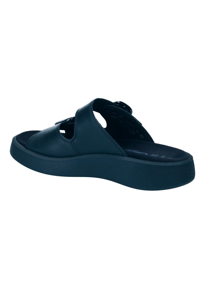 Modische Damen Pantolette mit Klettverschluss und weichem, wechselbarem Fußbett.