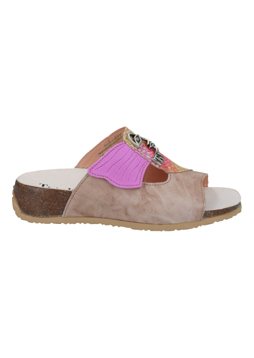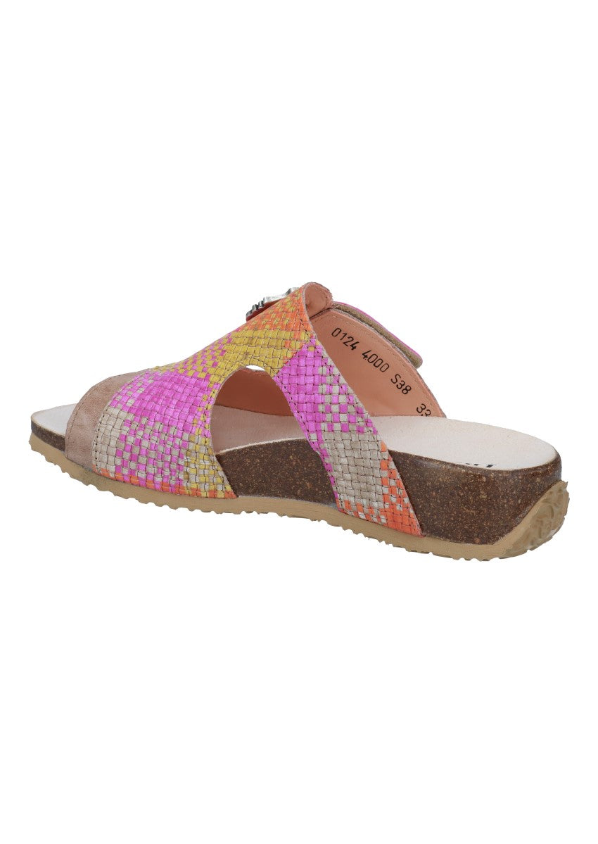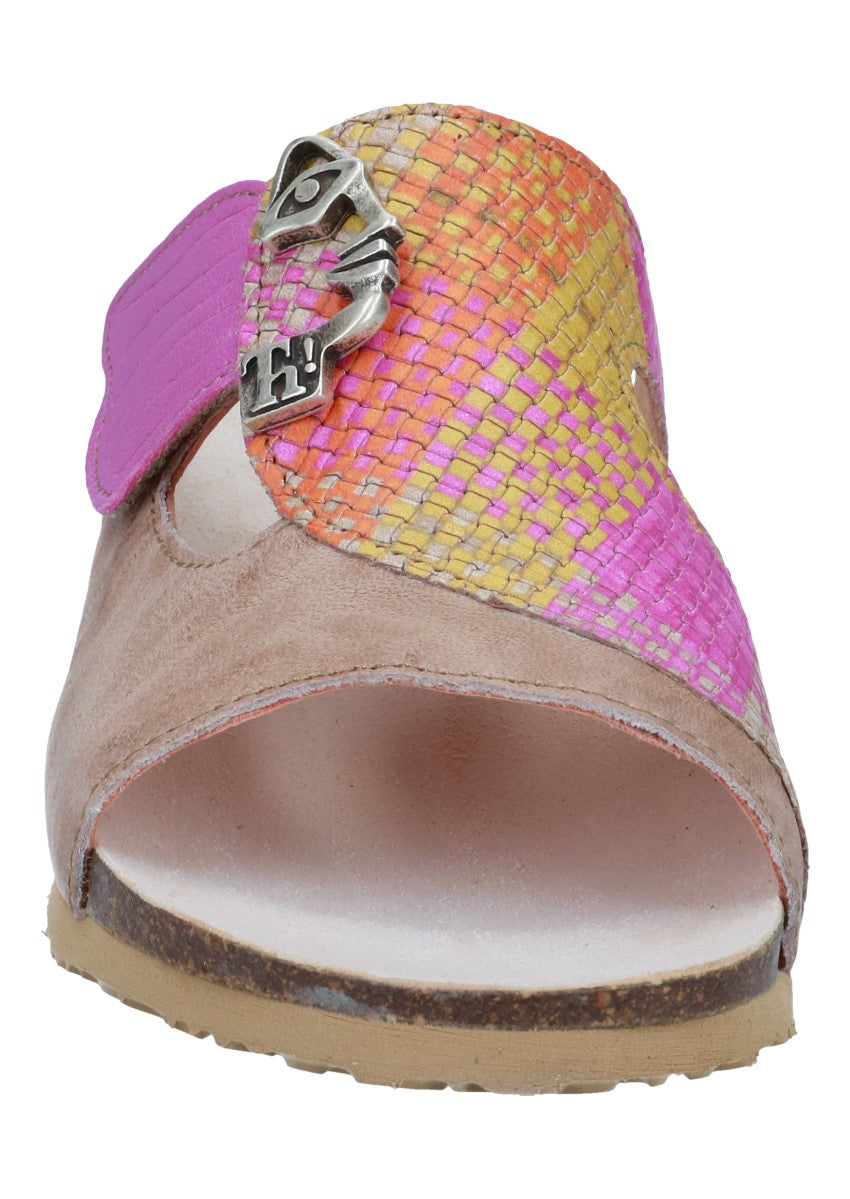 Modische, moderne und peppige Pantolette aus dem Hause "Think". Think-Schuhe bestehen aus den Einsatz natürlicher Materialien und Farben und entsprechen höchsten Qualitätsansprüchen.