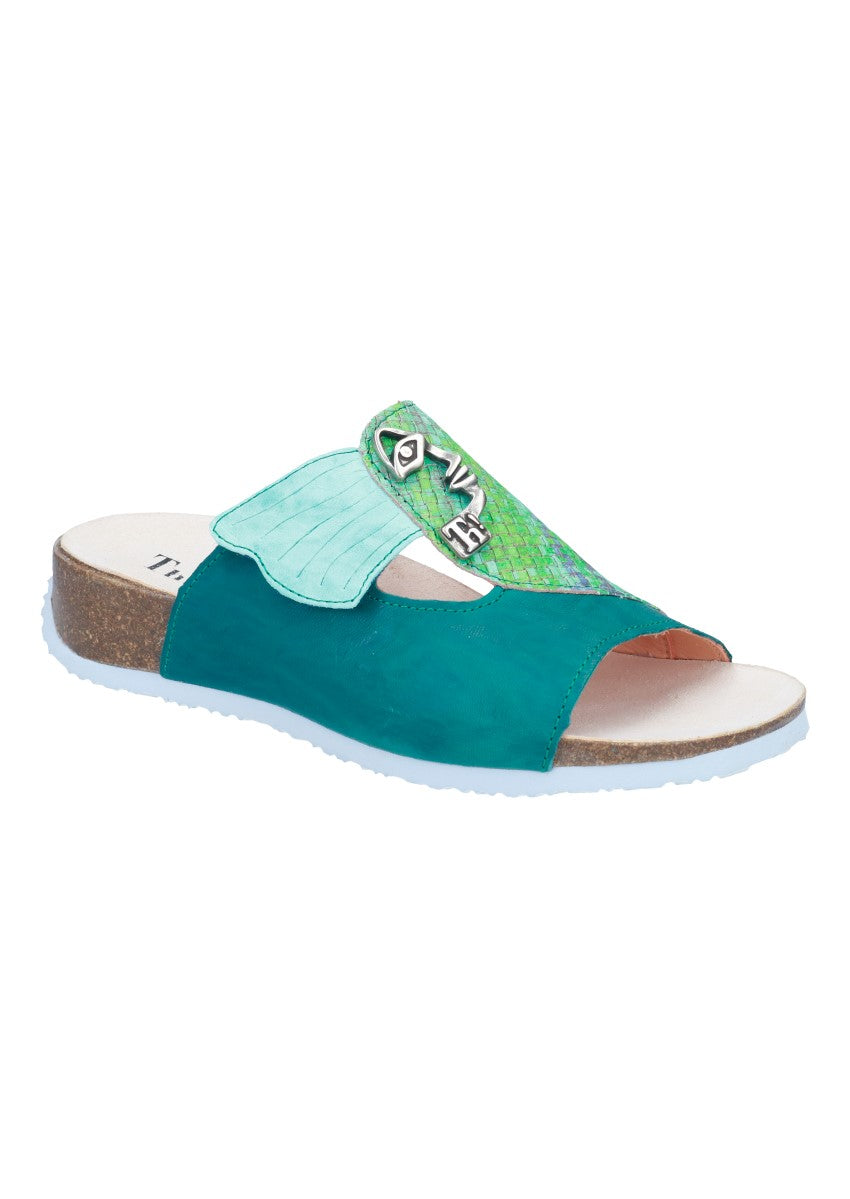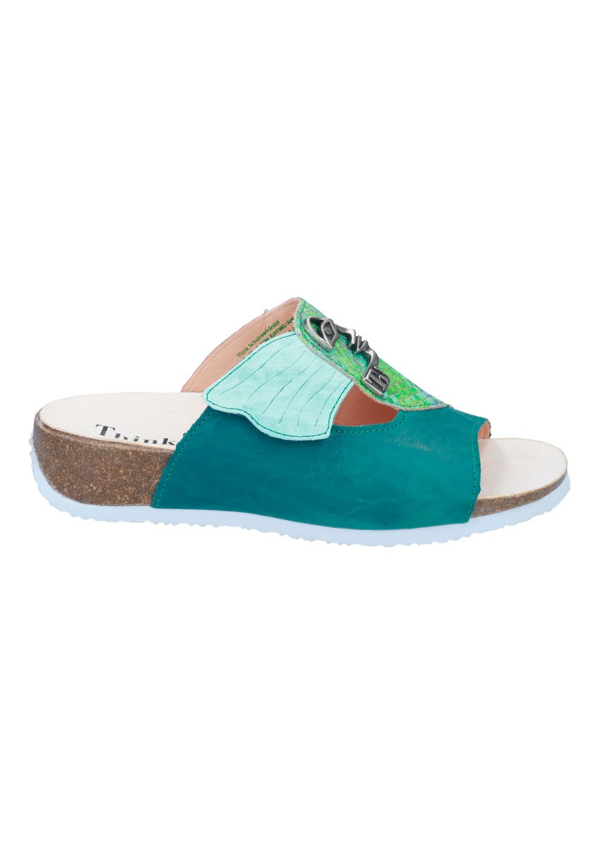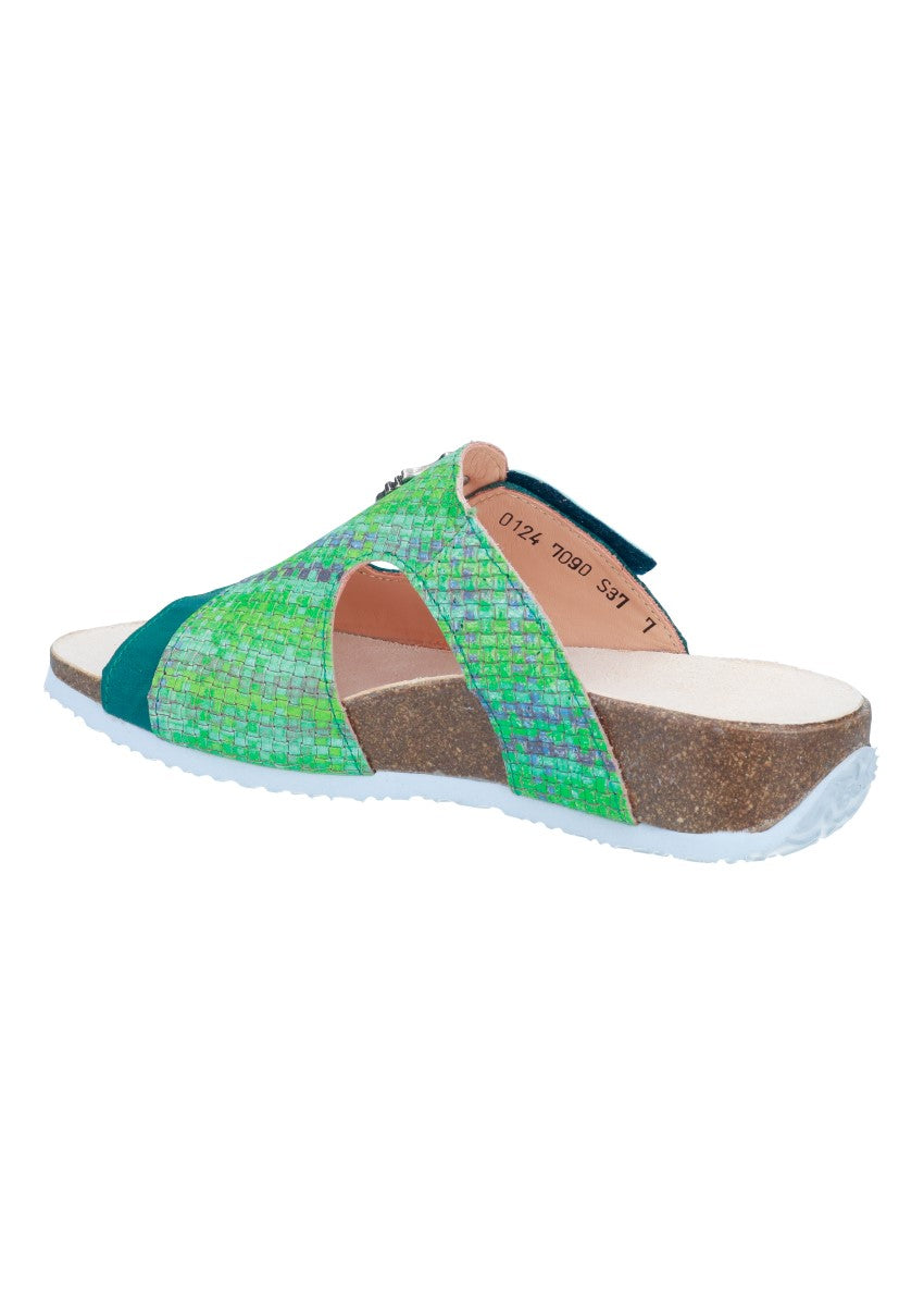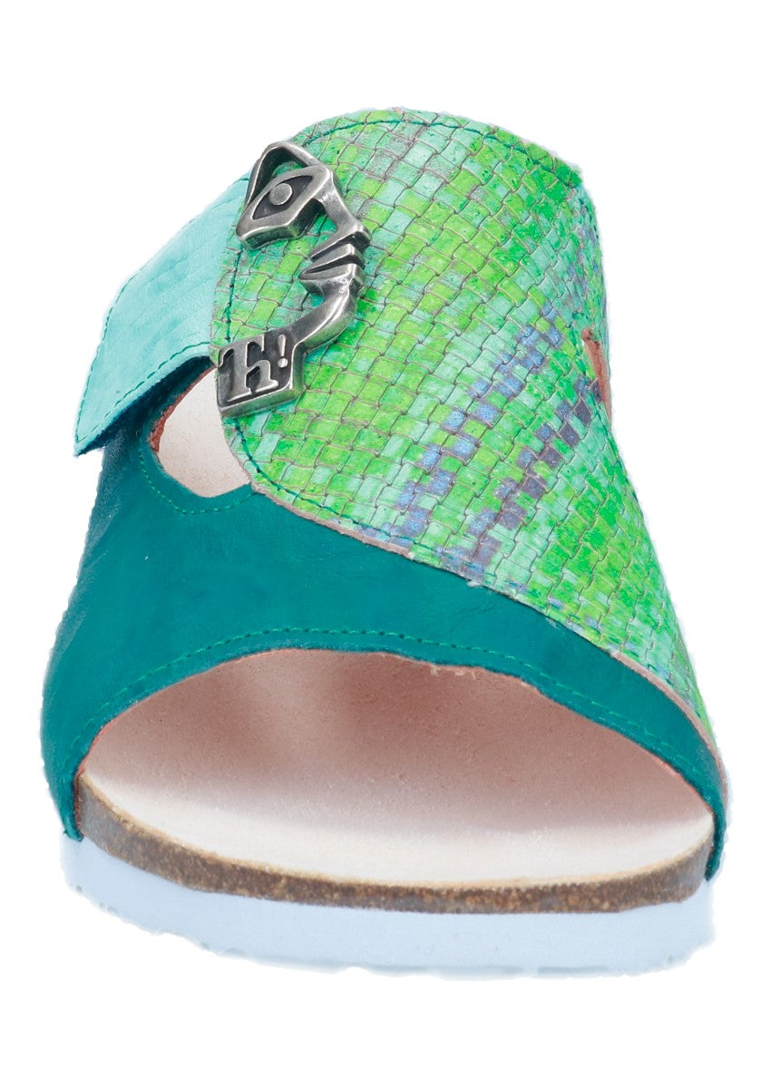 Modische, moderne und peppige Pantolette aus dem Hause "Think". Think-Schuhe bestehen aus den Einsatz natürlicher Materialien und Farben und entsprechen höchsten Qualitätsansprüchen.