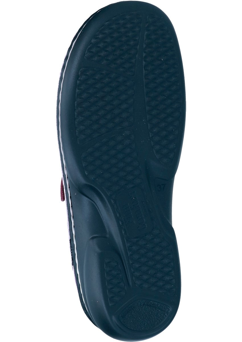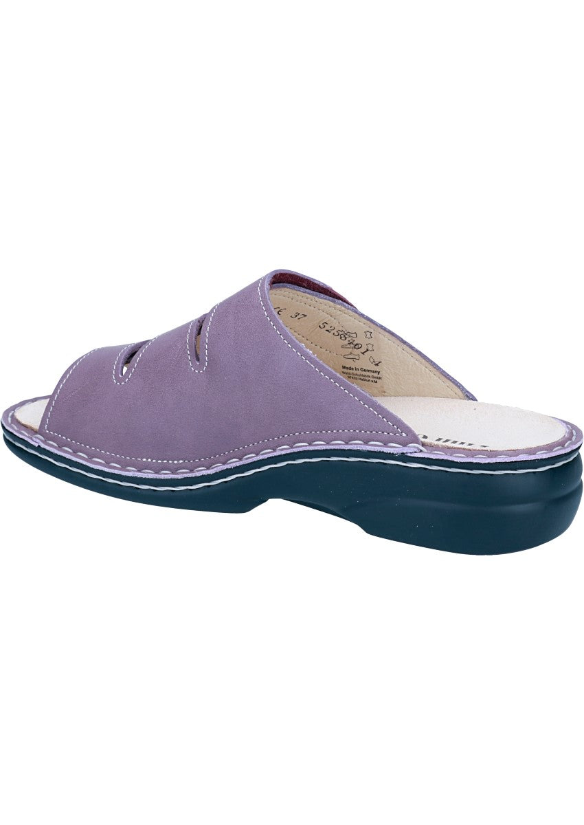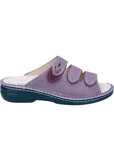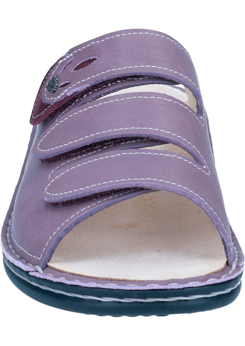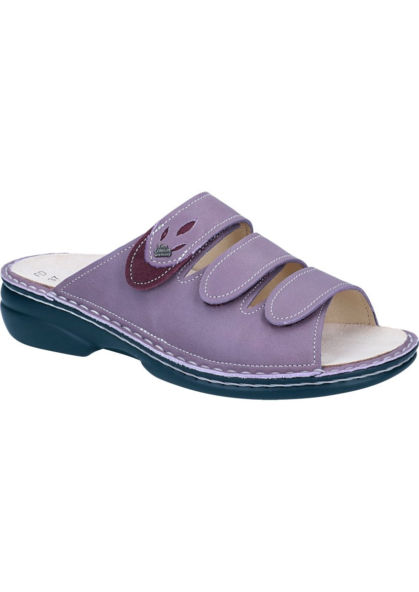 Das Modell Kos von FinnComfort ist eine Pantolette für Damen in der Form Classic, speziell für kräftigere Füße konzipiert. Die Machart ist Handnaht und das Obermaterial besteht aus Leder. Die Pantolette verfügt über einen Klettverschluss und ein auswechselbares Fußbett, was sie auch für orthopädische Einlagen geeignet macht.