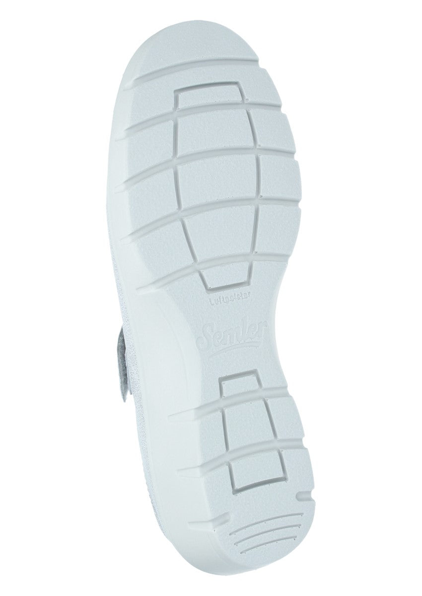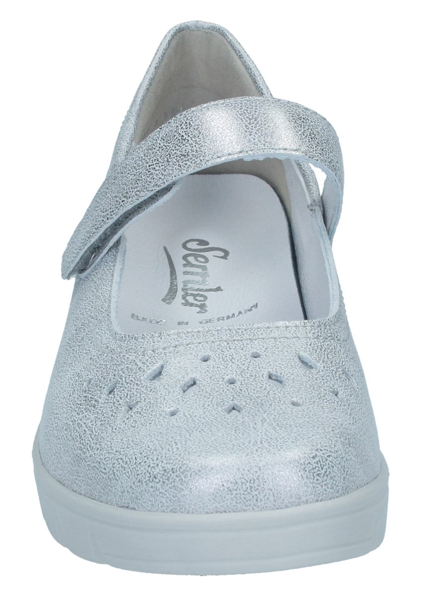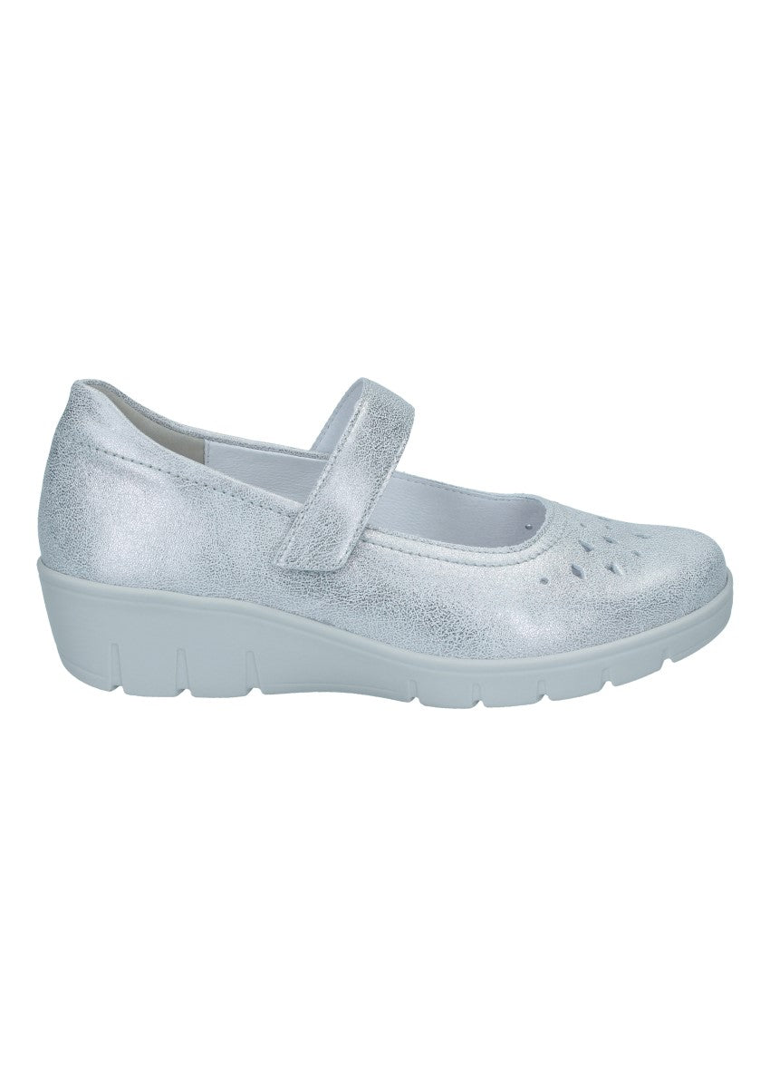 Sportlicher, luftiger SpangenPumps mit Kleiabsatz und Klettverschluss am Spann. Durch das wechselbare Fußbett ist dieser Schuh auch gut für Einlagenträgerinnen geeignet.