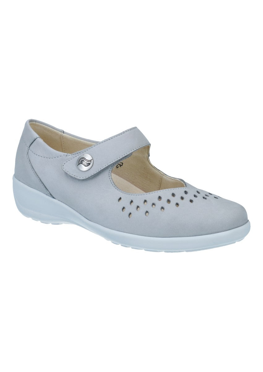 Sportlich-luftiger Halbschuh, der sich mittels dem Klettverschluss gut anpassen lässt.