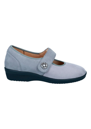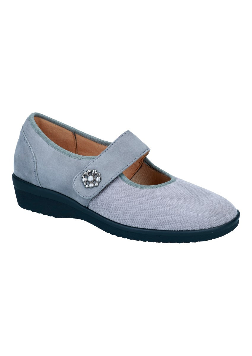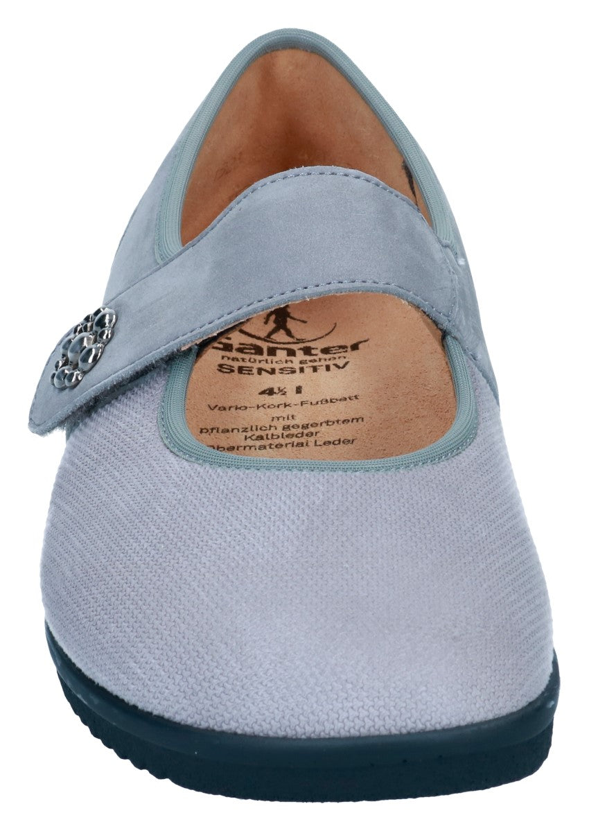 Sportlicher, luftiger Spangenballerina mit Klettverschluss am Spann. Durch das wechselbare Fußbett ist dieser Schuh auch gut für Einlagenträgerinnen geeignet.