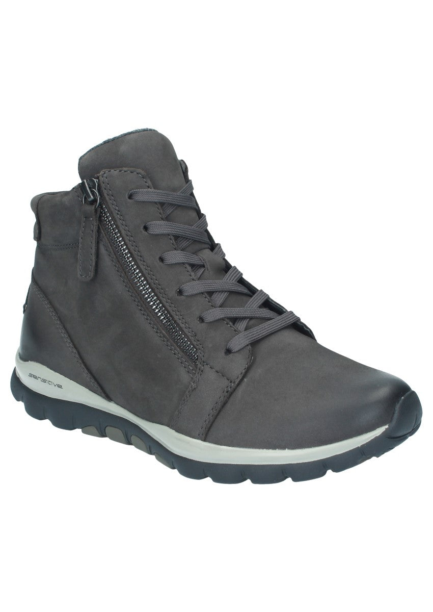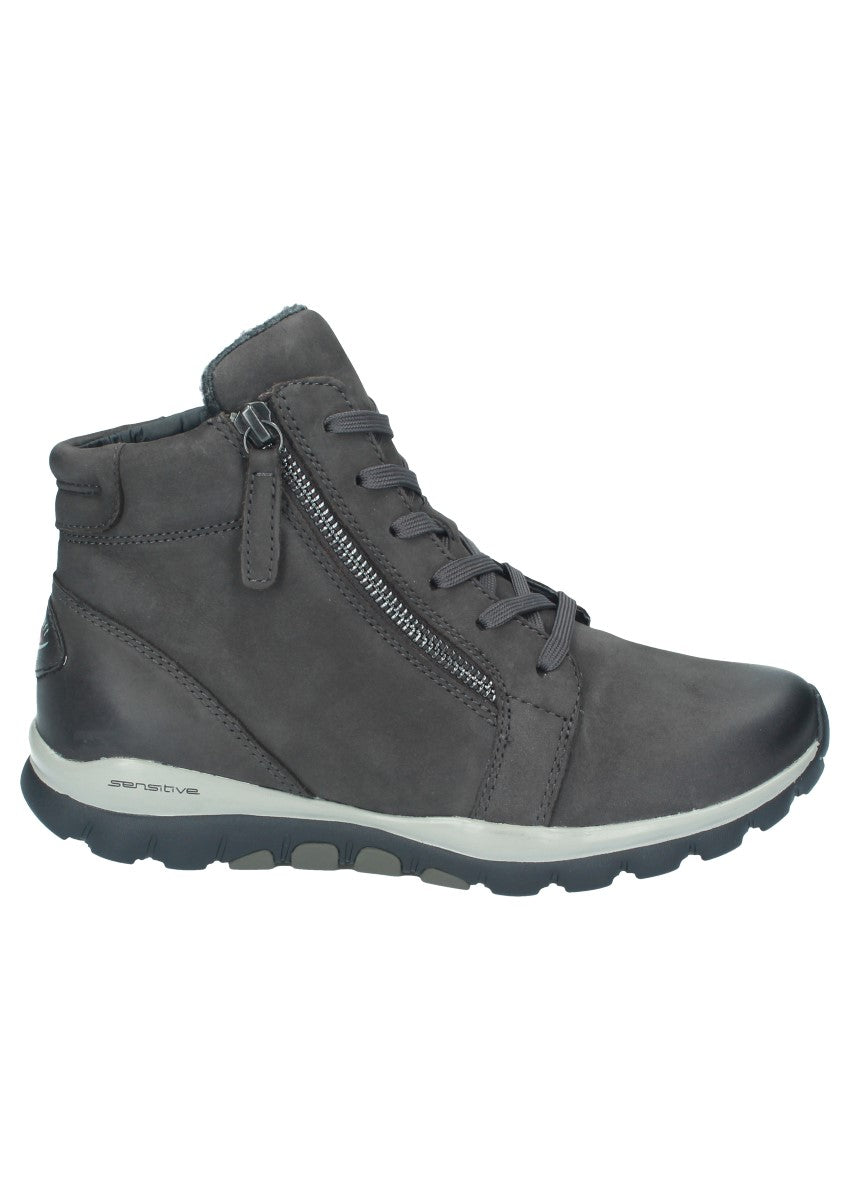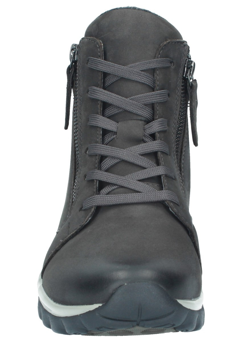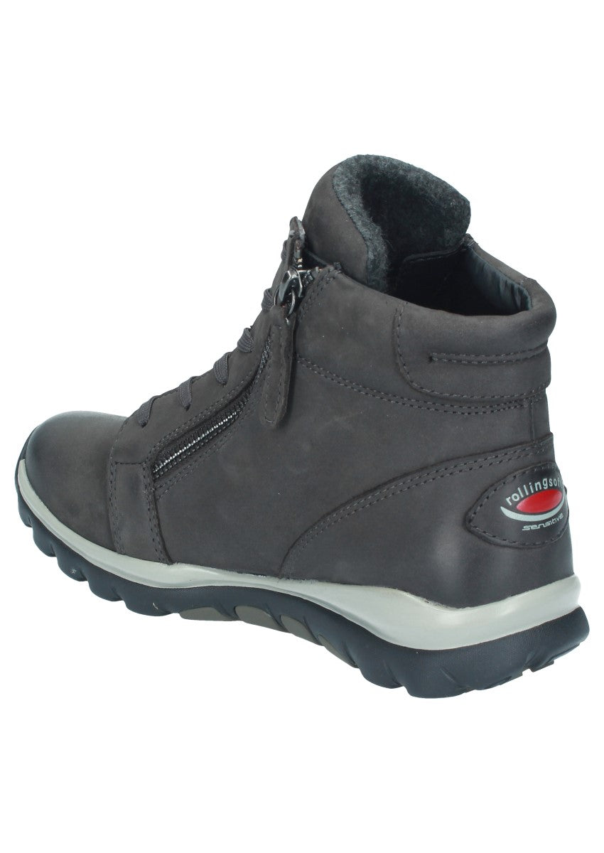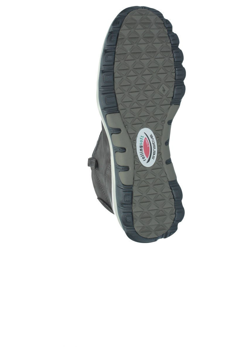 Sportliche Dynamic-Stiefelette, die sich mittels der Schnürung am Spann gut anpassen lässt. Die beiden Reißverschlüsse an der Innen- und Außenseite erleichter Ihnen den Einstieg in den Schuh. Rollingsoft ist eine innovative Technik, die das Gehen erleichtert: Eine spezielle, abgerundete Sohle sorgt für eine verbesserte, natürliche Abrollbewegung, die Rücken und Gelenke schont. Seitliche Stabilisatoren ermöglichen außerdem einen sicheren Gang - mit deutlich reduzierter Umknickgefahr. So tun Sie etwas für Ihre Gesundheit und ein modisches Outfit!