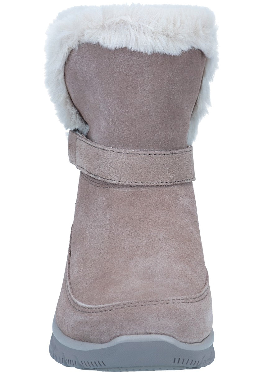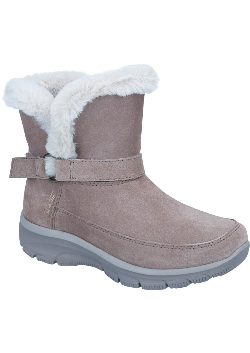 Starte mit einem mühelosen, kuscheligen Tragegefühl in den Winter mit dem Skechers Hands Free Slip-Ins: Easy Going - Dreamers Luxe Vibes. Dieser Stiefel ist mit dem exklusiven Skechers Fersenkissen (Heel Pillow) ausgestattet und verfügt über ein mit Scotchgard behandeltes Obermaterial aus Veloursleder mit Besatz und Futter aus Kunstpelz, einen Riemen in Wickeloptik und eine gepolsterte Skechers Air-Cooled Memory Foam Innensohle.