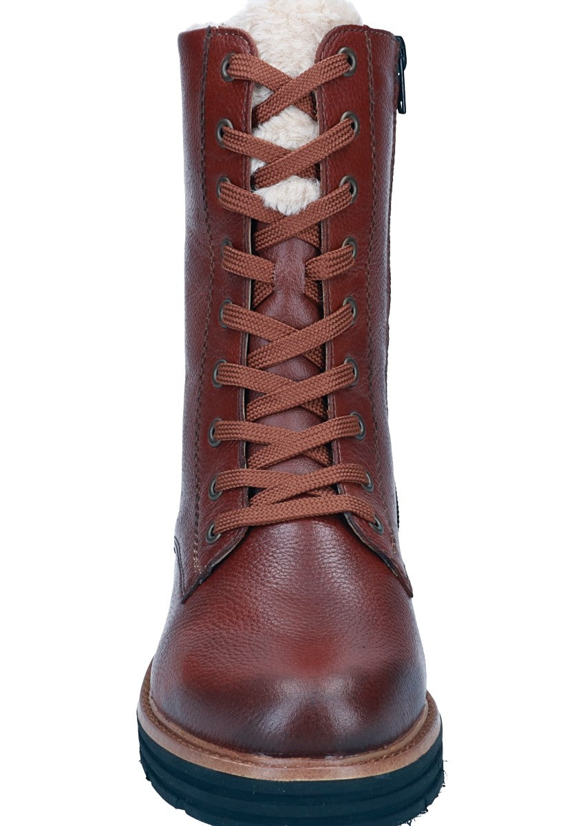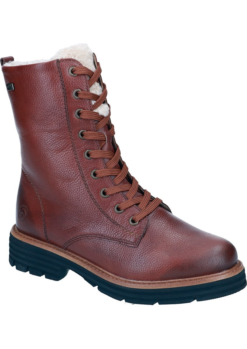Diese braunen remonte Schnürstiefel für Damen aus Glattleder lassen die Herzen modebewusster Frauen höherschlagen. Neben der Schnürung ist das Modell auch mit einem Reißverschluss versehen und sorgt so für optimalen Halt. Lite 'n Soft: Die herausnehmbare Einlegesohle trifft auf eine ultraleichte Laufsohle. Durch die Komfortweite ist den Zehen mehr Bewegungsfreiheit geboten. Die Kombination aus wasserabweisender remonteTEX-Technologie und sehr warmem und kuscheligem Schurwoll-Futter sorgt für warme und trockene Füße bei jedem Wetter.