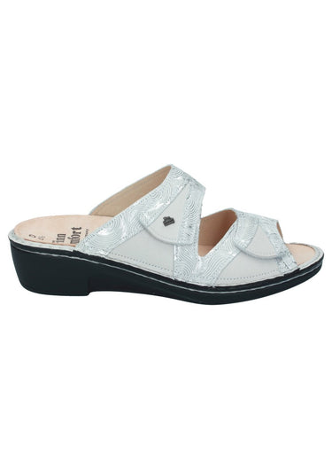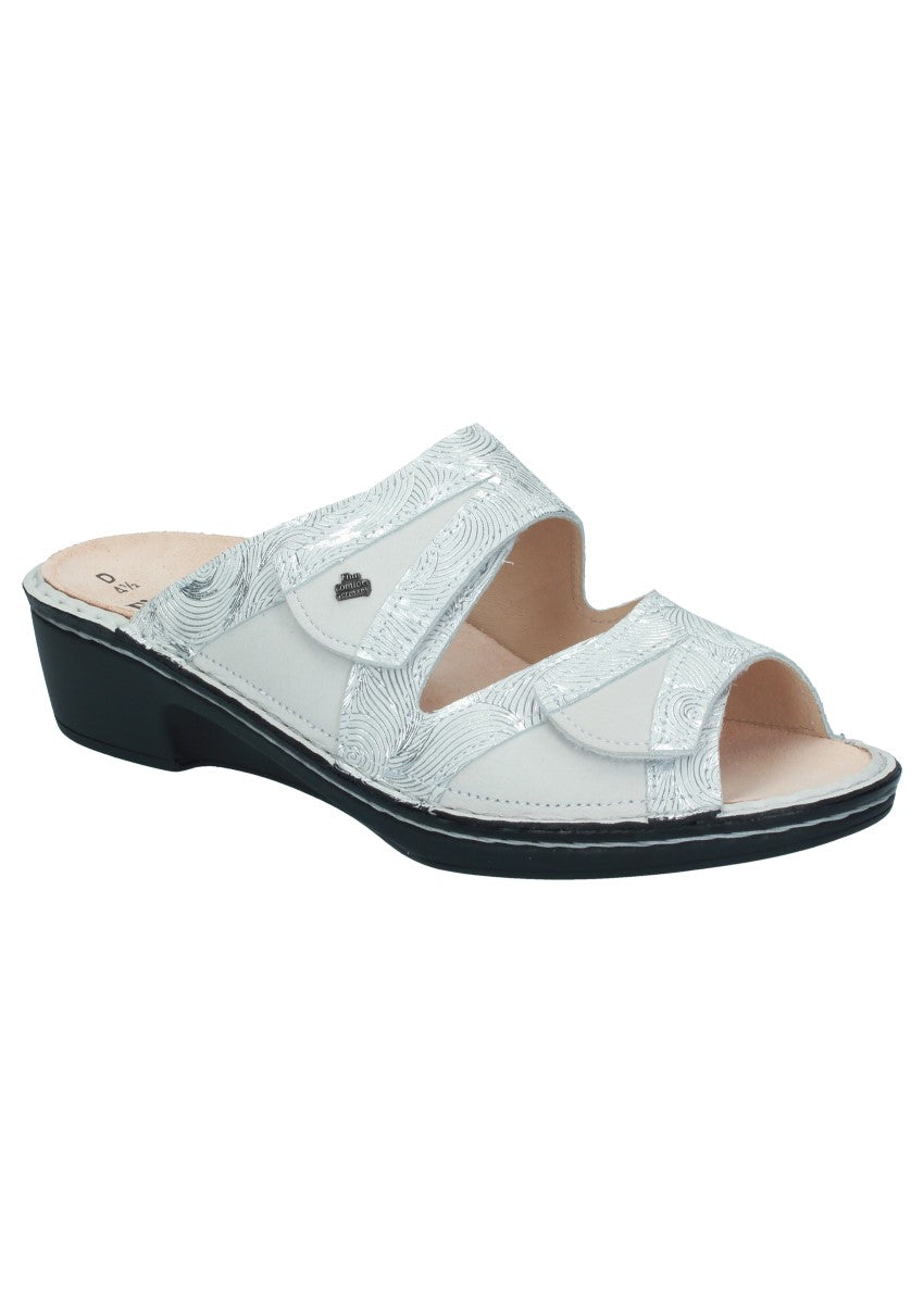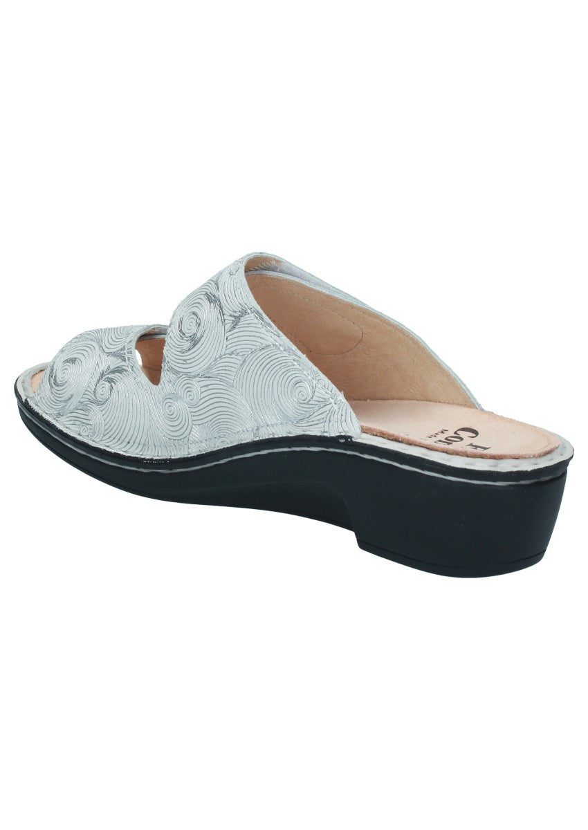 Damenpantolette mit kleinem Absatz und zweiverstellbaren Klettverschlüssen die Ihrem Fuß guten Halt und optimalen Sitz bieten.