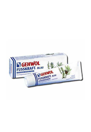 GEHWOL FUSSKRAFT BLAU enthält bewährte Wirkstoffe zur Verhütung von Fußgeruch, Fußpilz und Juckreiz zwischen den Zehen