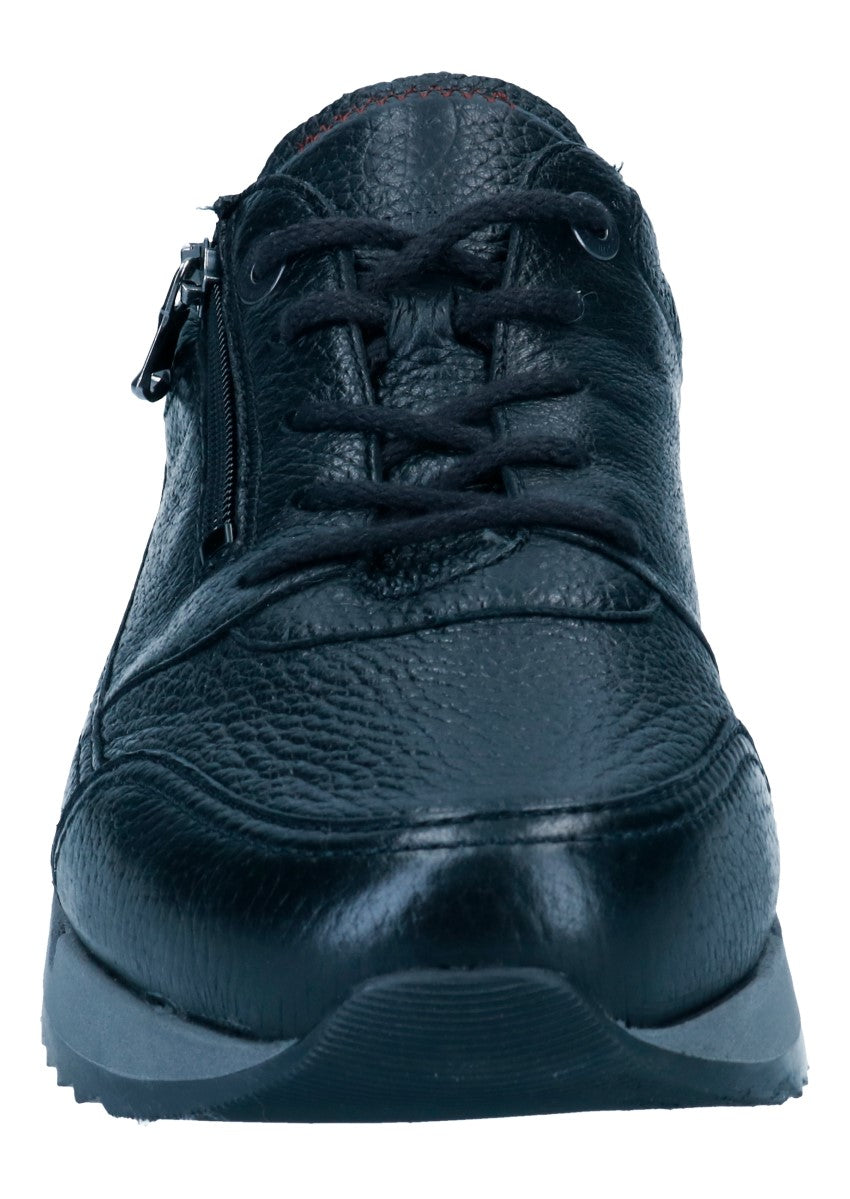 Sportiver Herrenhalbschuh im schlichen Design. Das klassisch schwarze Hirschleder ist nicht nur universell kombinierbar sondern auch besonders weich und anschmiegsam. Der seitliche Reißverschluss erleichtert das An- und Ausziehen und durch das wechselbare Fußbett wird ermöglicht eine individuelle Einlage reinzulegen.