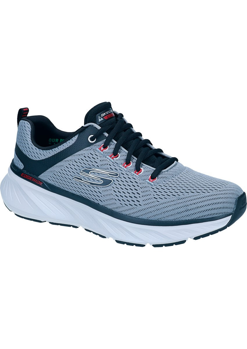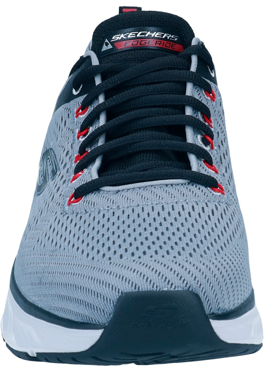 Der Skechers Edgeride - Contention ist der ideale Schuh für aktive Tage - egal ob beim Training, Spaziergang oder im Alltag Das Obermaterial besteht zu mindestens 20 % aus recyceltem Material, was zur Abfallreduzierung beiträgt. Dieser vegane, sportliche Schuh besticht durch ein Mesh-Obermaterial mit elastischen Schnürsenkeln, eine gut gepolsterte Zwischensohle und eine Skechers Air-Cooled Memory Foam-Innensohle.