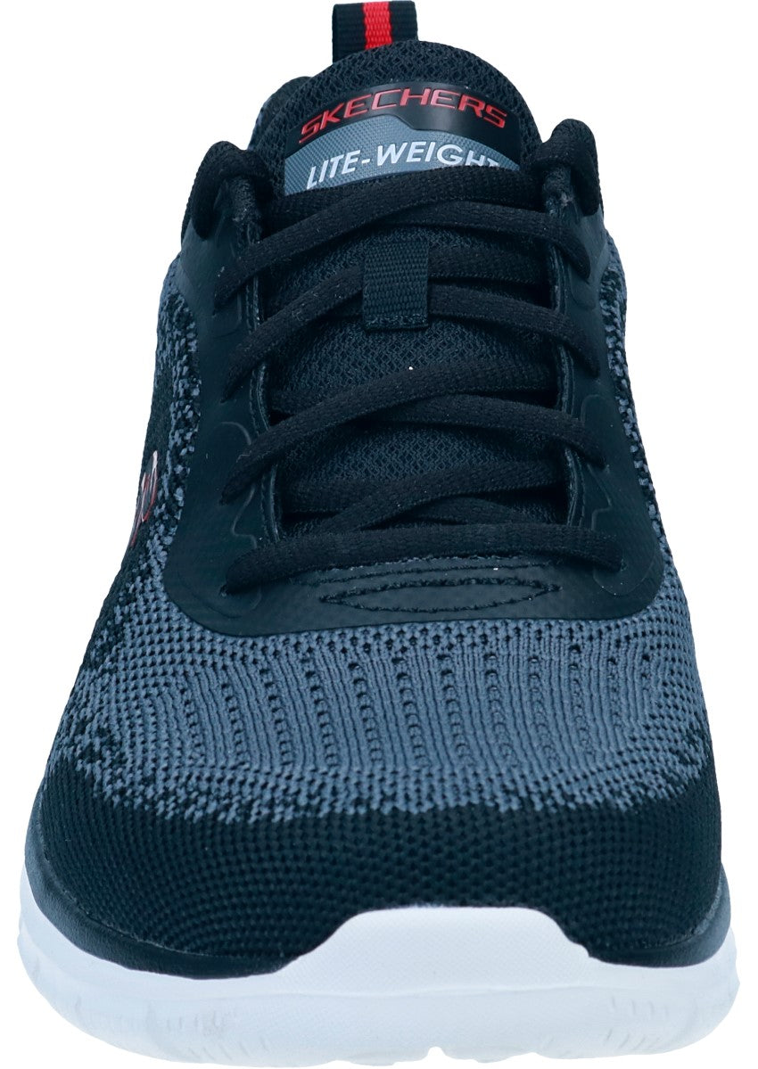Der Skechers Track - Glendor in markantem Schwarz mit roten Akzenten vereint sportliches Design mit funktionalem Komfort. Das atmungsaktive Knit-Obermaterial sorgt für Flexibilität und ein angenehmes Fußklima, während die klassische Schnürung optimalen Halt garantiert - perfekt für Training, Freizeit oder den täglichen Einsatz.