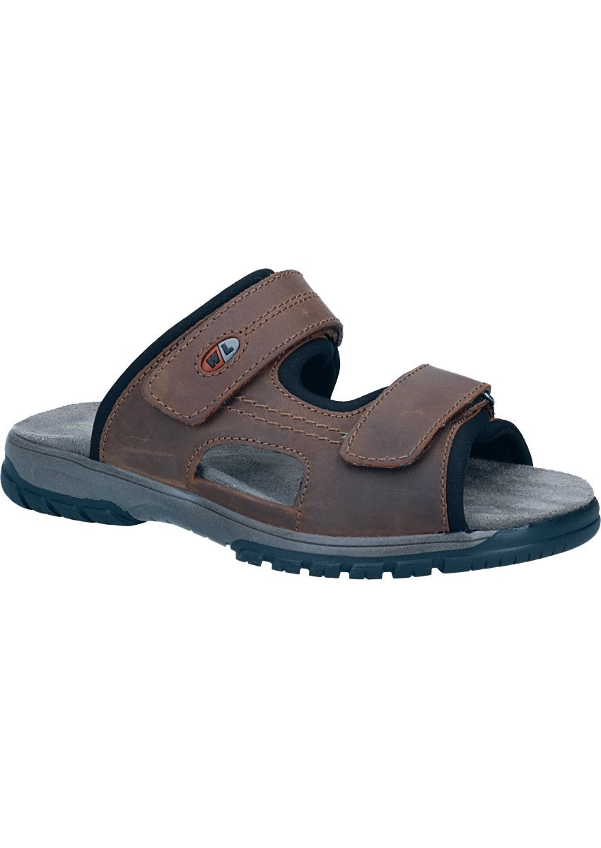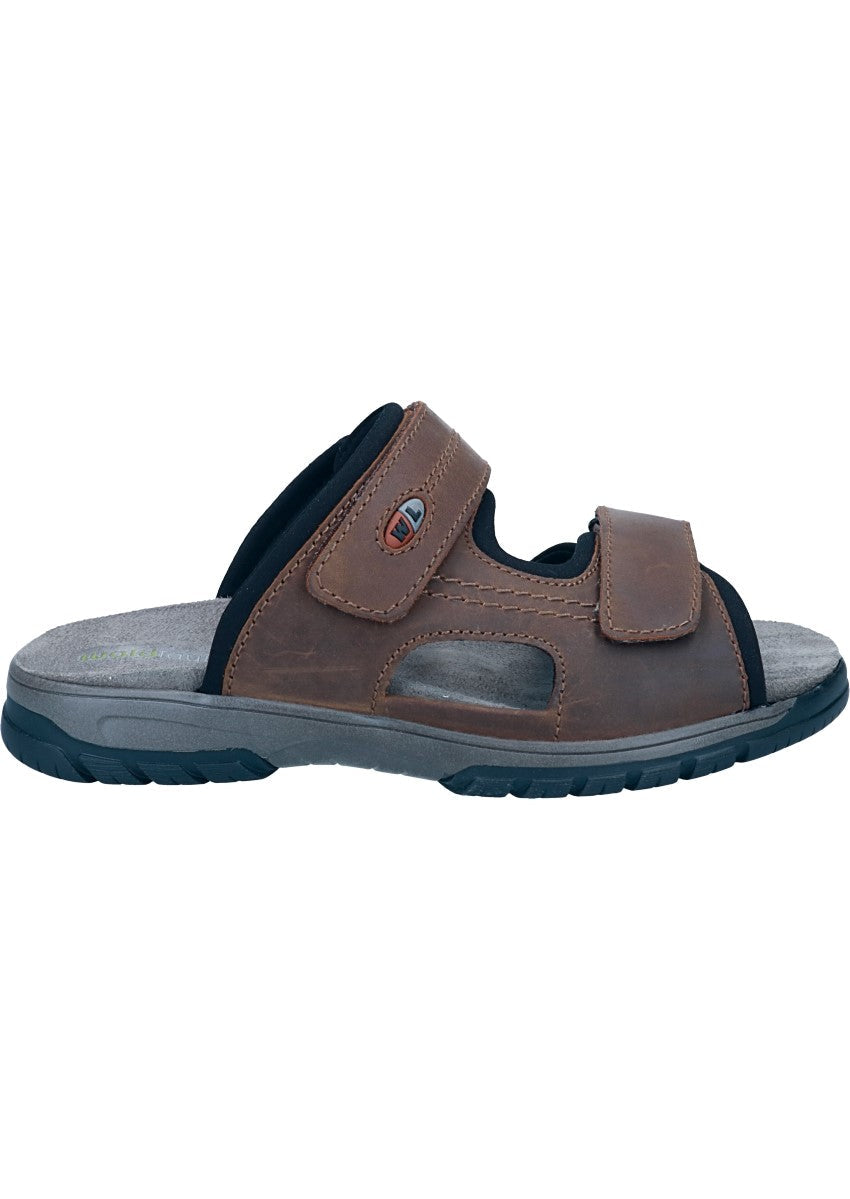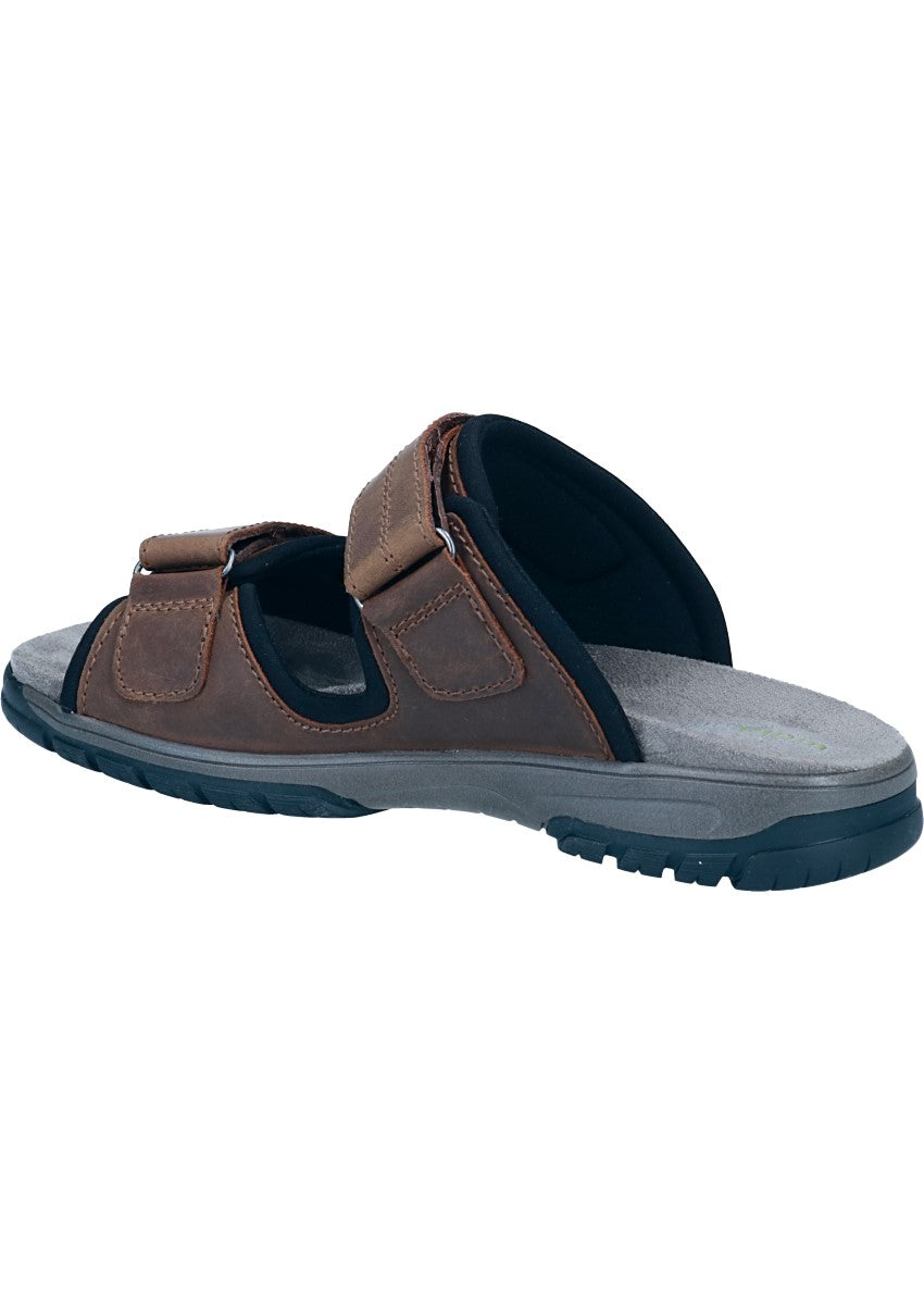 Sommerliche comfort Pantolette für Herren von Waldläufer aus einem robusten Fettnubukleder. Innen ist der Schuh mit einem elastischen sowie atmungsaktiven Textil augestattet. Die weich gepolsterte textile Einlegesohle ist auswechselbar und schafft somit Platz für eigene Einlagen. Auf diesen Schuh freuen sich besonders etwas breitere Füße, die Weite H bietet hier ausreichend Platz. Klettverschlüsse halten den Schuh sicher am Fuß und sorgen auch für die individuelle und optimale Anpassung.