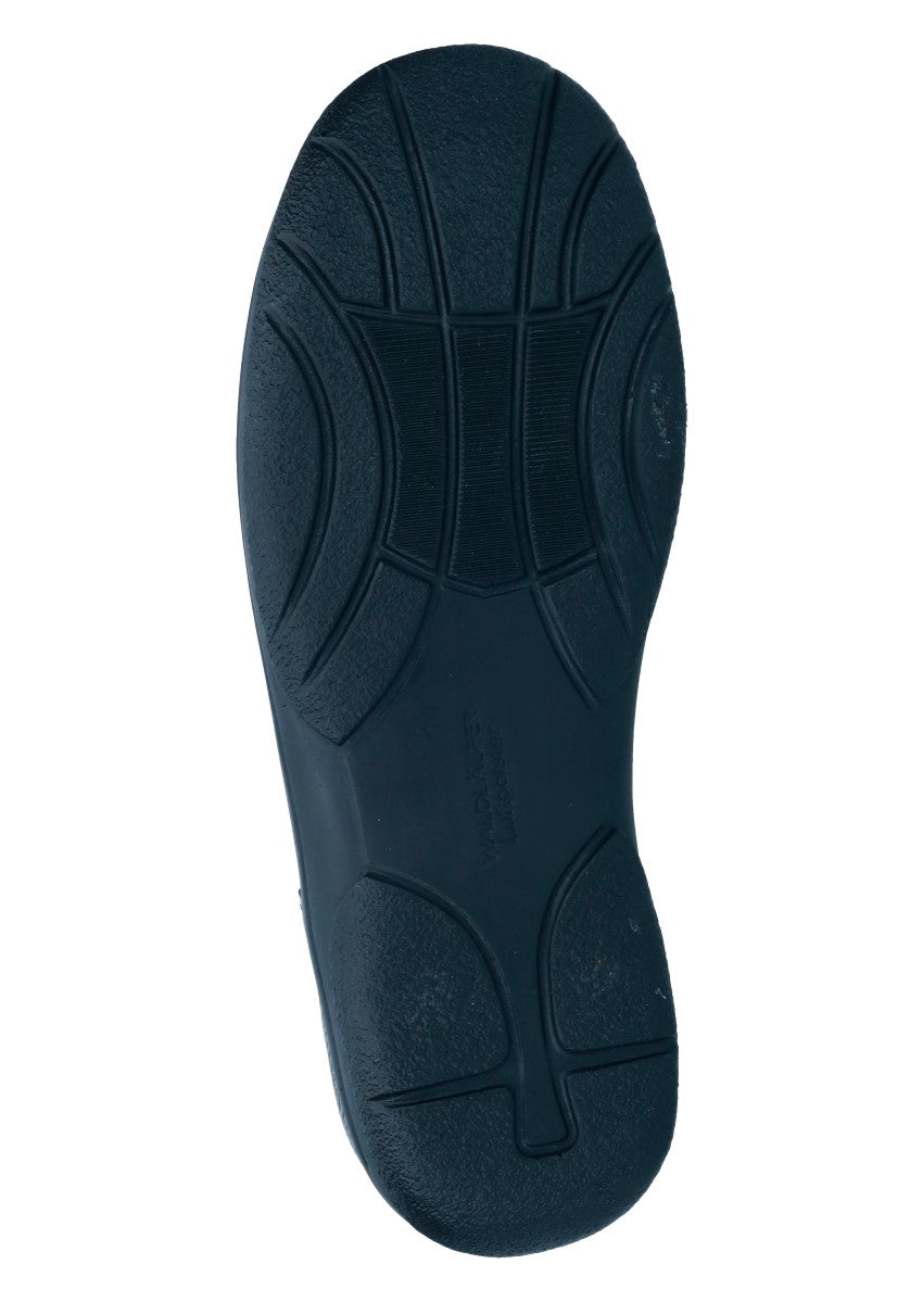 Sportiver Herrenslipper mit weicher Laufsohle. Die Gummizüge am Spann sorgen für einen guten und festen Halt. Durch das Wechselfußbett wird es ermöglicht eine individuelle Einlage reinzulegen.