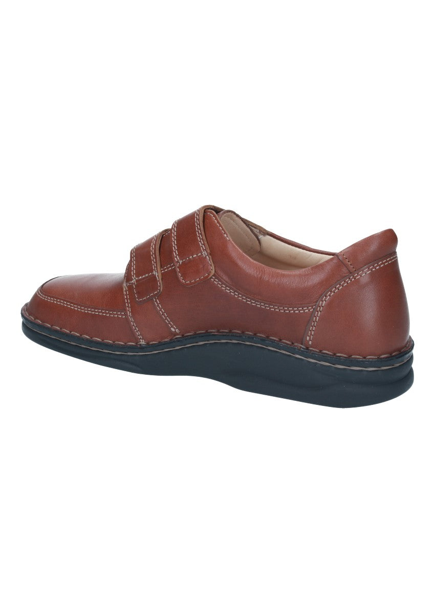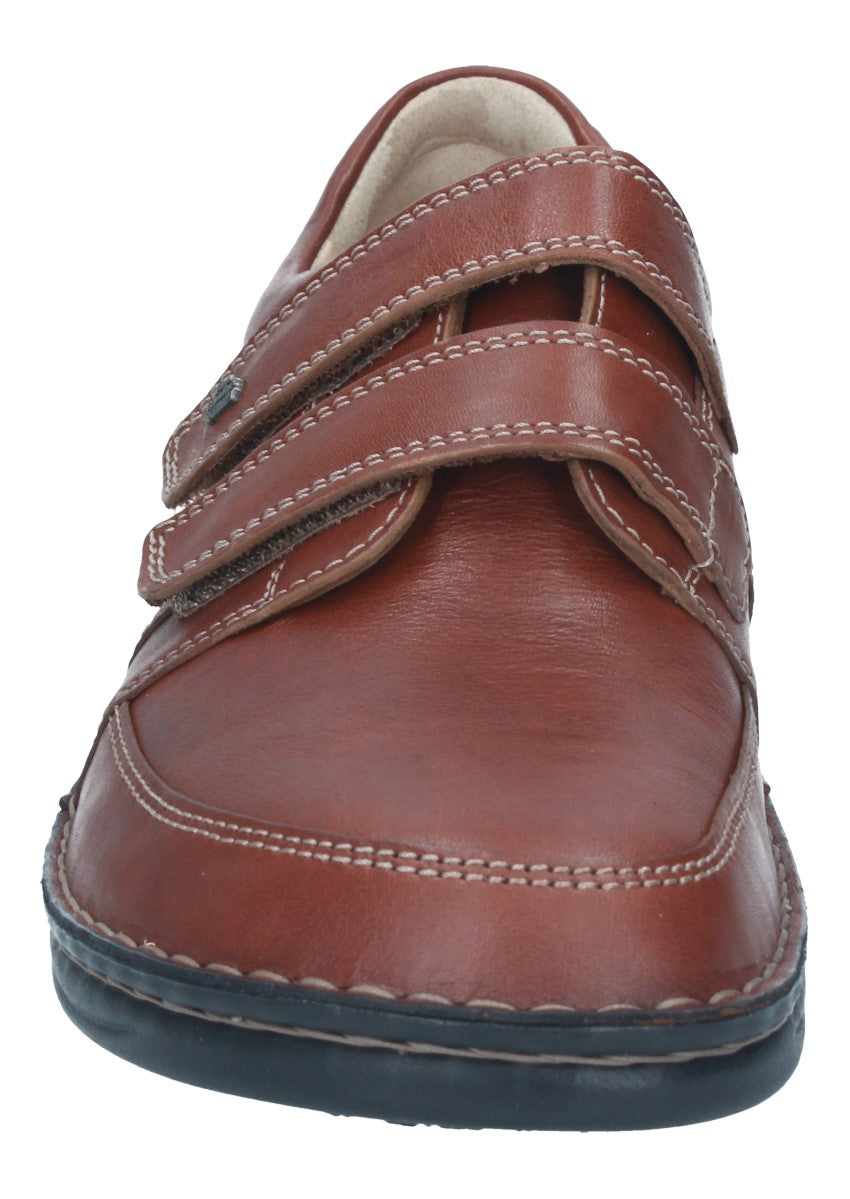 Modischer Herrenhalbschuh mit durchgehender Sohle. Die zwei Klettverschlüsse am Spann sorgen für festen Halt, optimalen Sitz und erleichtert den Ein- und Ausstiegt in den Schuh. Dazu ist der Absatz mit einem Shock-Absorber ausgestattet und somit extra gedämpft. Durch das wechselbare Fußbett wird Ihnen ermöglicht eine individuelle Einlage reinzulegen. Dazu verleiht die Ziernaht diesem Modell das gewisse etwas. Lassen Sie sich von der Qualität des Schuhs überzeugen und genießen Sie den Komfort