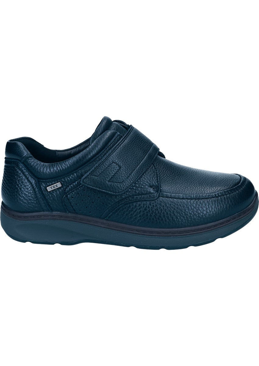 Herren Klettverschluss Halbschuh mit der Weite K für kräftige Füße. Dank einer integrierten Tex Membran ist dieser Schuh stark wasserabweisend und atmungsaktiv. Durch das herausnehmbares Fußbett auch für lose Einlagen geeignet.