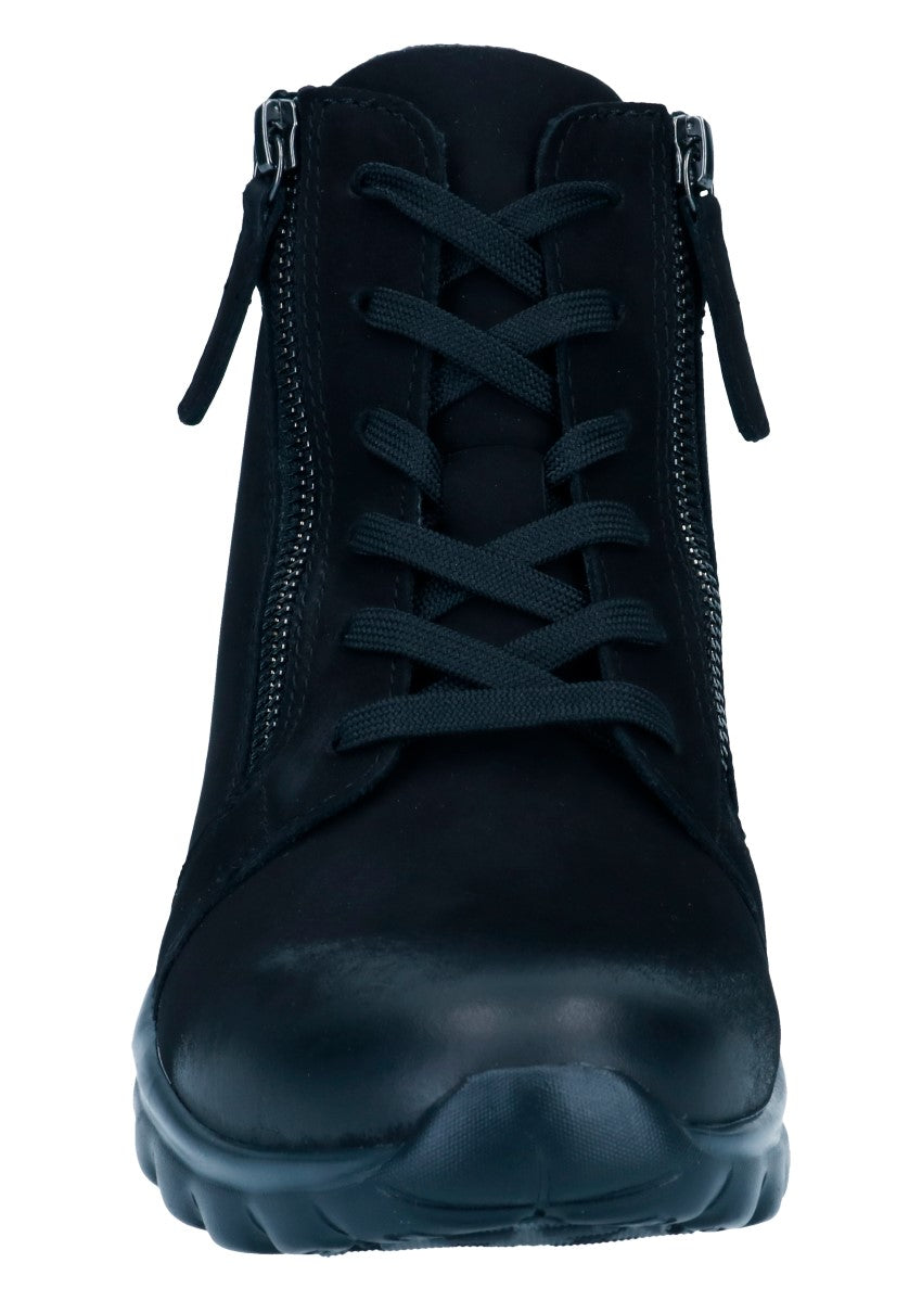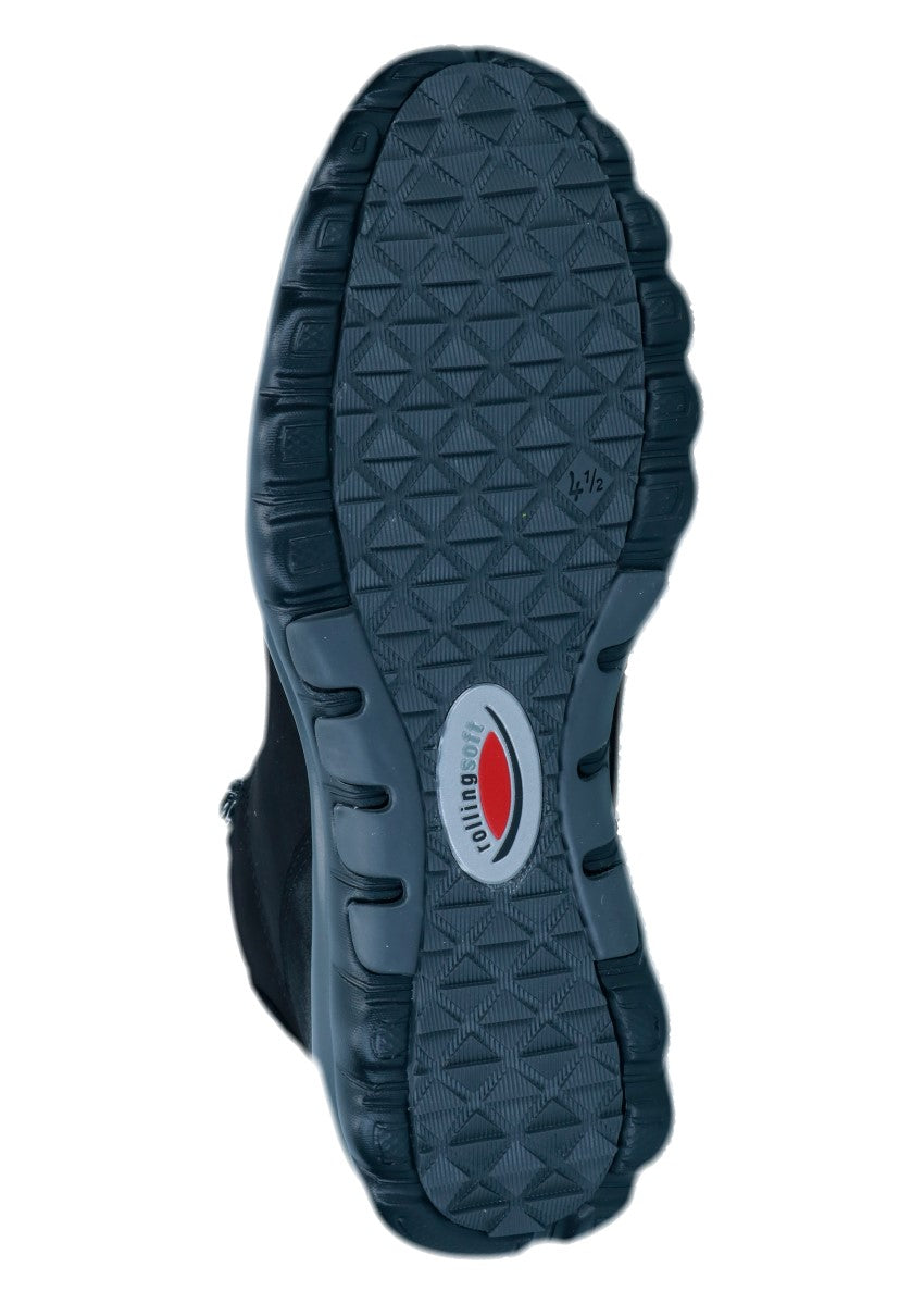 Sportliche Dynamic-Stiefelette, die sich mittels der Schnürung am Spann gut anpassen lässt. Die beiden Reißverschlüsse an der Innen- und Außenseite erleichter Ihnen den Einstieg in den Schuh. Rollingsoft ist eine innovative Technik, die das Gehen erleichtert: Eine spezielle, abgerundete Sohle sorgt für eine verbesserte, natürliche Abrollbewegung, die Rücken und Gelenke schont. Seitliche Stabilisatoren ermöglichen außerdem einen sicheren Gang - mit deutlich reduzierter Umknickgefahr. So tun Sie etwas für Ihre Gesundheit und ein modisches Outfit!