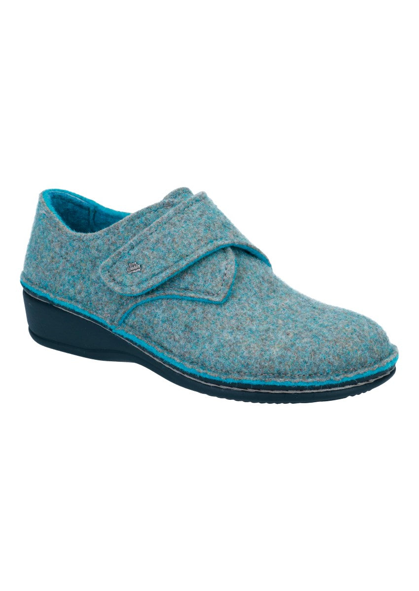Damen Hausschuh aus dem Hause Finn Comfort, der als praktischer Allrounder überzeugt. Durch den Klettverschluss am Spann ist er leicht verstellbar und das wechselbare Fußbett ermöglicht Ihnen eine individuelle Einlage reinzulegen.
