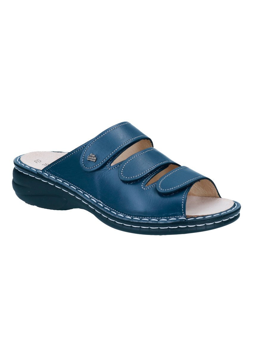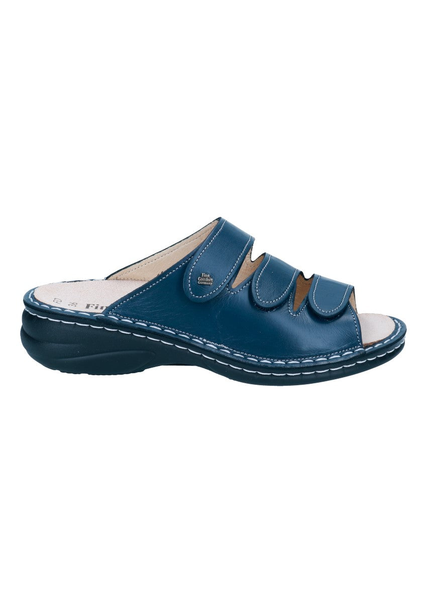 Das Modell Hellas von FinnComfort ist eine bequeme Damen-Pantolette in der Form Classic mit drei verstellbaren Klettverschlüssen für optimale Fußanpassung. Sie ist für kräftige, breite Füße konzipiert und hat eine Naturform. Das auswechselbare Fußbett ermöglicht individuelle Anpassungen und das Tragen orthopädischer Einlagen. Hellas erfüllt die hohen Qualitätsstandards von FinnComfort.