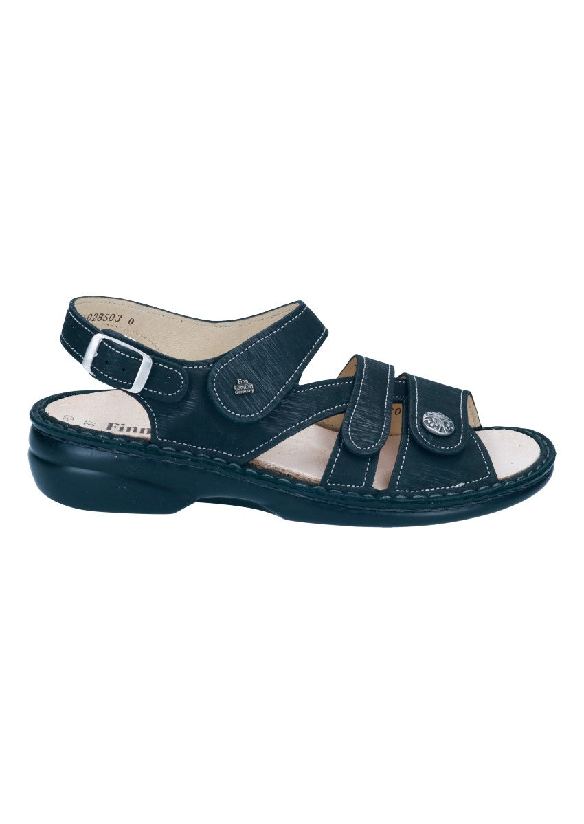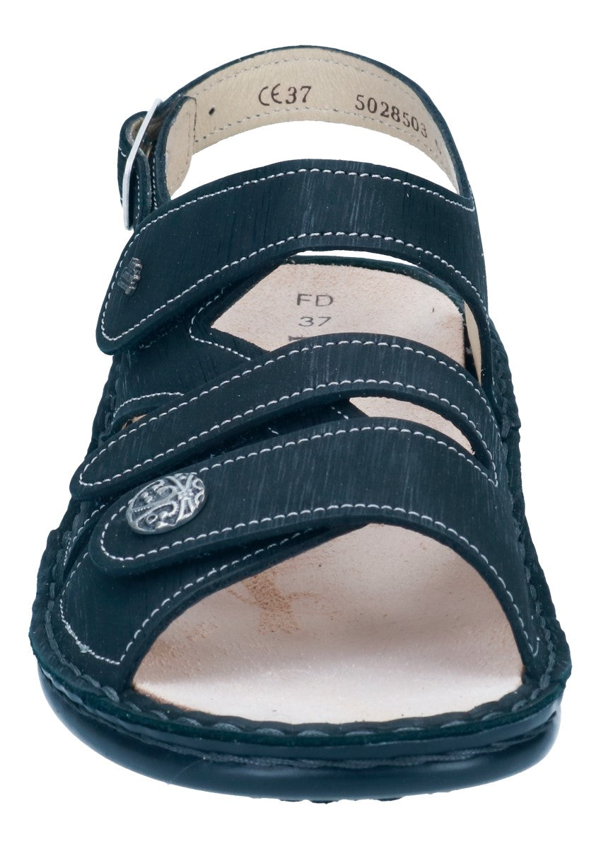 Die FinnComfort Damensandale Gomera vereint Komfort und Eleganz. Drei Klettverschlüsse und die großzügige Passform bieten eine gute Anpassung für kräftige Füße. Das Leder-Obermaterial und die Handnaht sorgen für Langlebigkeit. Das austauschbare Kork-Latex-Fußbett ist für orthopädische Einlagen geeignet. Ideal für Damen, die Stil und Bequemlichkeit schätzen.