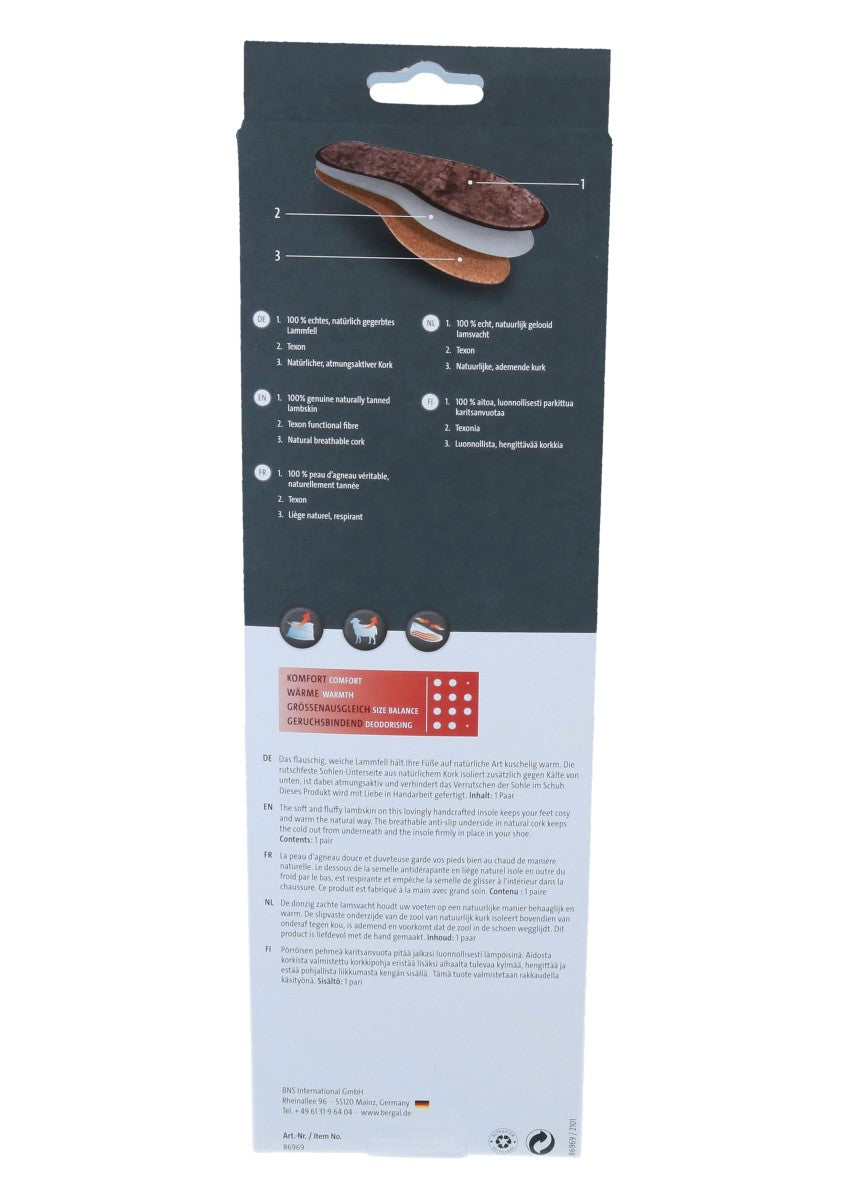 Das flauschige, 100% echte Fell hält Ihre Füße auf natürliche Art kuschelig warm. Die rutschfeste Sohlen-Unterseite aus natürlichem Kork isoliert zusätzlich gegen die Kälte von unten, ist dabei atmungsaktiv und verhindert das Verrutschen der Sohle im Schuh.