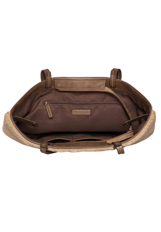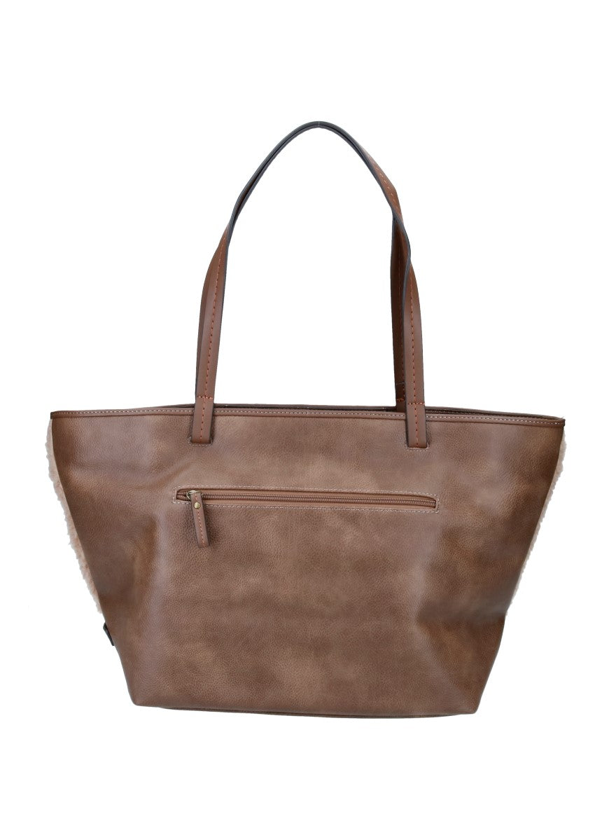 Wichtiger Trend-Style mit weicher Fellimitat-Front, in welchem ein TOM TAILOR-Artwork tonal aufgestickt ist. An der rechten Seitennaht befindet sich eine kleine Schlaufe mit Logoprägung. Rückseite, Boden, Henkel und Anhänger sind in glattem bzw. fein genarbtem Lederimitat gefertigt.