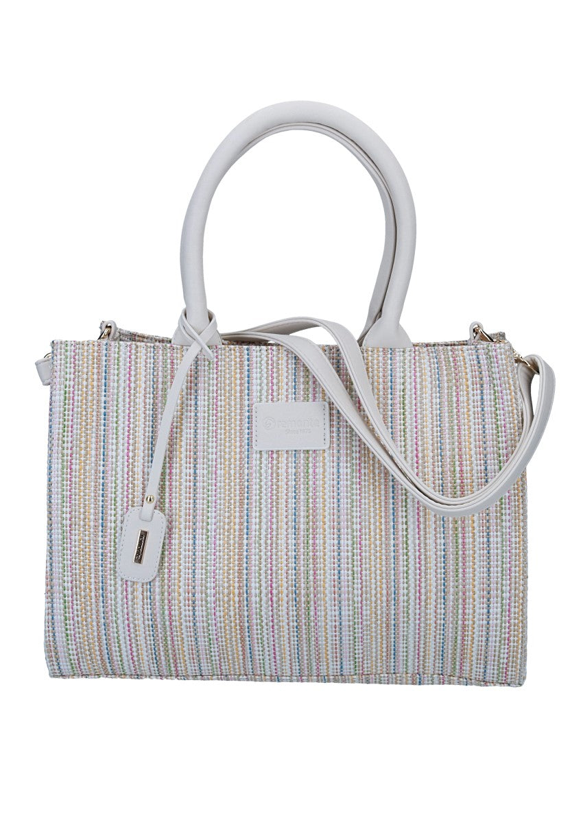 Dieser Shopper von remonte in bunter Optik ist nicht nur super stylish, sondern auch noch geräumig. Zusätzlich zum Shopper ist eine kleine Tasche in gleicher Optik enthalten, die sich mit einem Reißverschluss schließen lässt. Der Shopper ist mit einem langen Riemen und einem Tragehänkel ausgestattet und kann ebenfalls mit einem Reißverschluss verschlossen werden. Das gewisse Etwas verleiht der remonte Anhänger der Tasche.