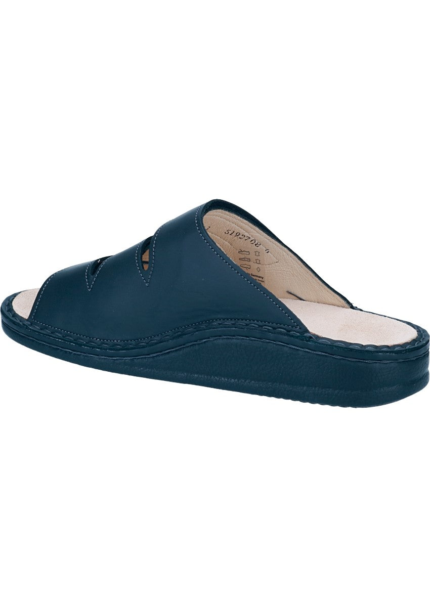 Die FinnComfort "Korfu" Pantolette mit drei Klettverschlüssen für den Herren. Sie ist speziell für kräftige Füße konzipiert und bietet eine bequeme Passform. Mit dem austauschbaren Fußbett ist der Schuh auch für orthopädische Einlagen geeignet. Die Kork-Latex-Bettung sorgt für zusätzlichen Komfort und natürliche Dämpfung.