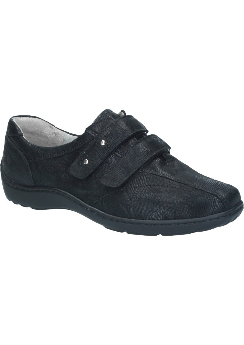 Bequemer Damenhalbschuh mit weicher Sohle. Die zwei Klettverschlüsse am Spann geben dem Fuß einen festen Halt und durch das wechselbare Fußbett haben auch die Einlagenträger Ihre Freude am tragen von diesem Schuh.