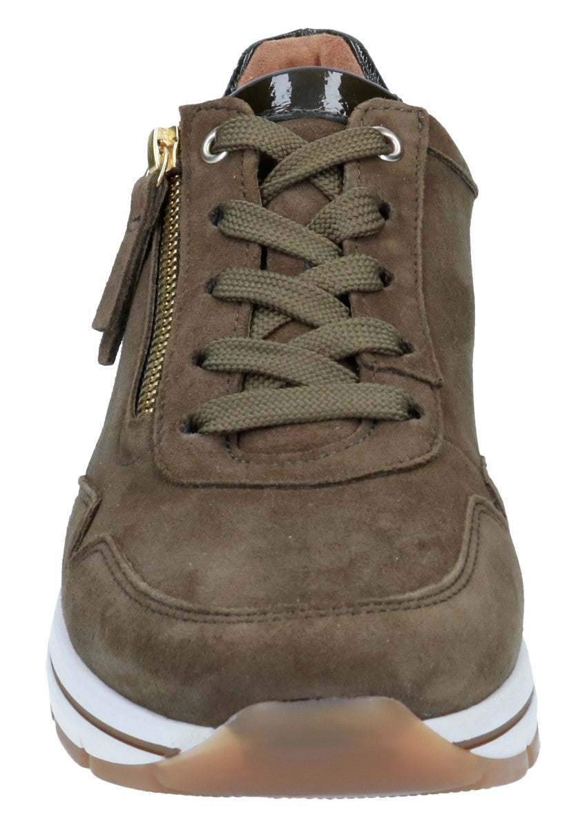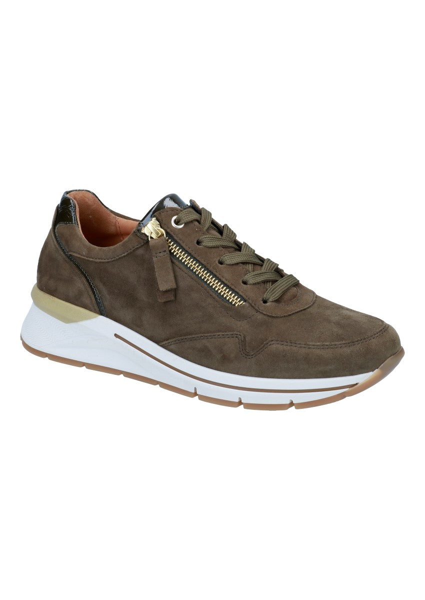 Sportlicher und modischer Damensneaker aus dem Hause Gabor. Durch den seitlichen Reißverschluss wird der Ein- und Ausstieg erleichter und das wechselbare Fußbett ermöglicht eine individuelle Einlage reinzulegen.