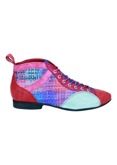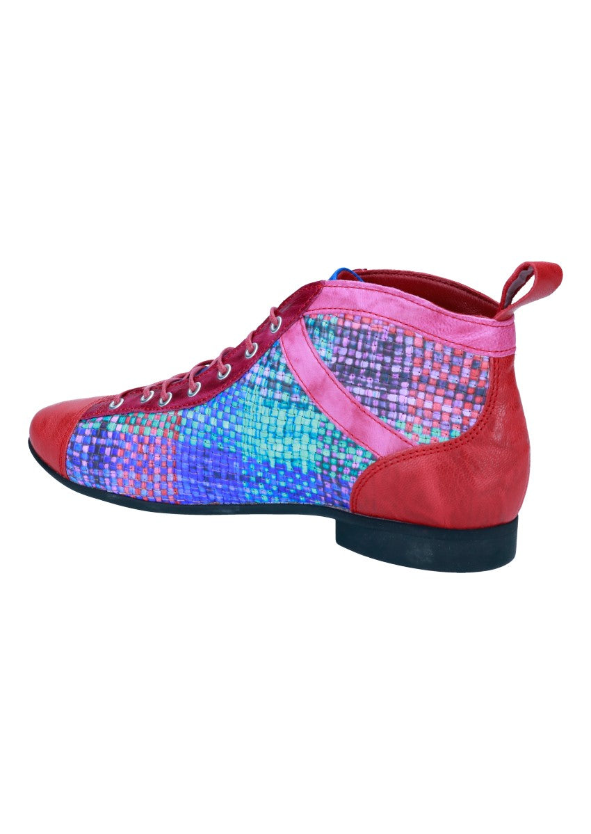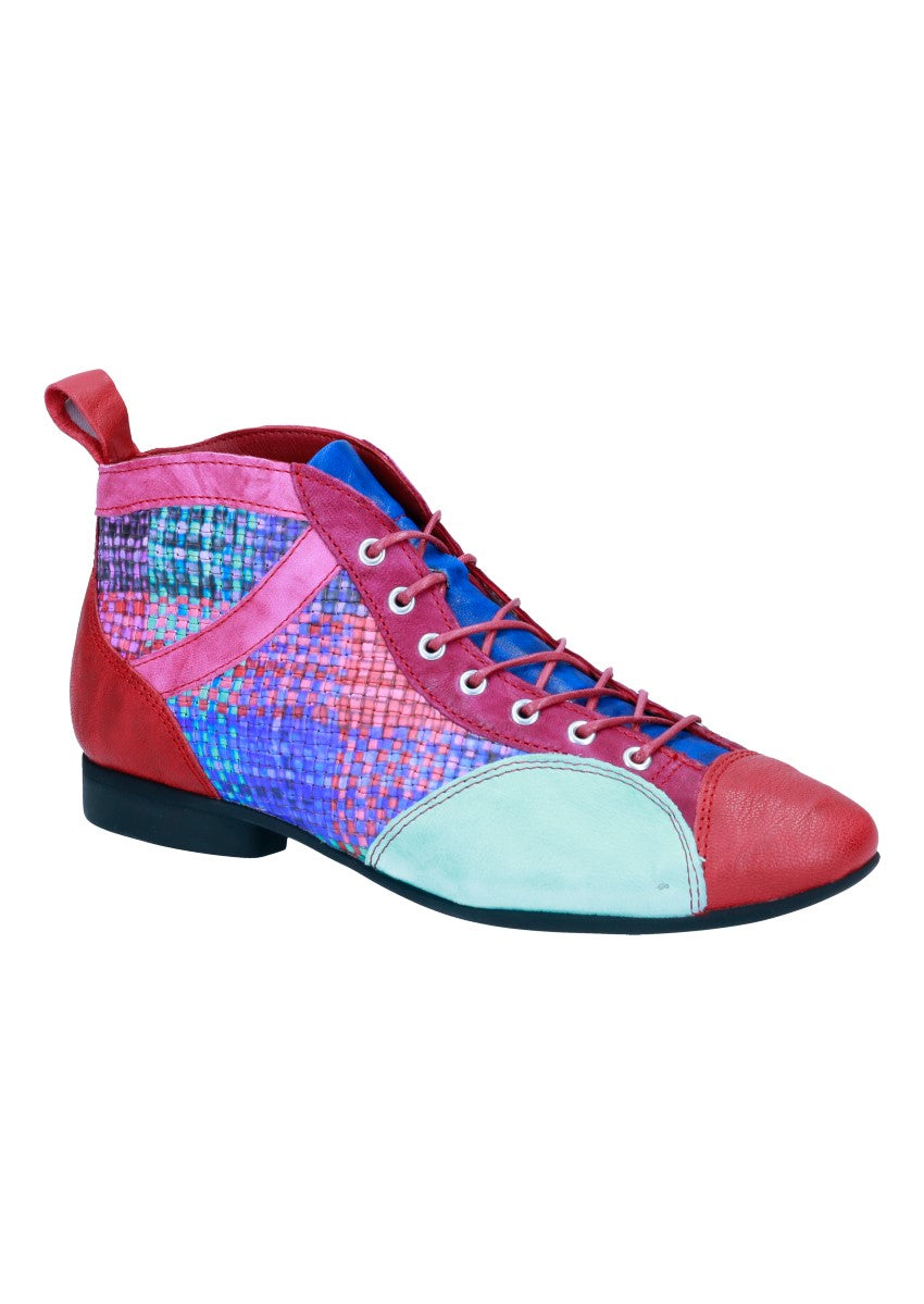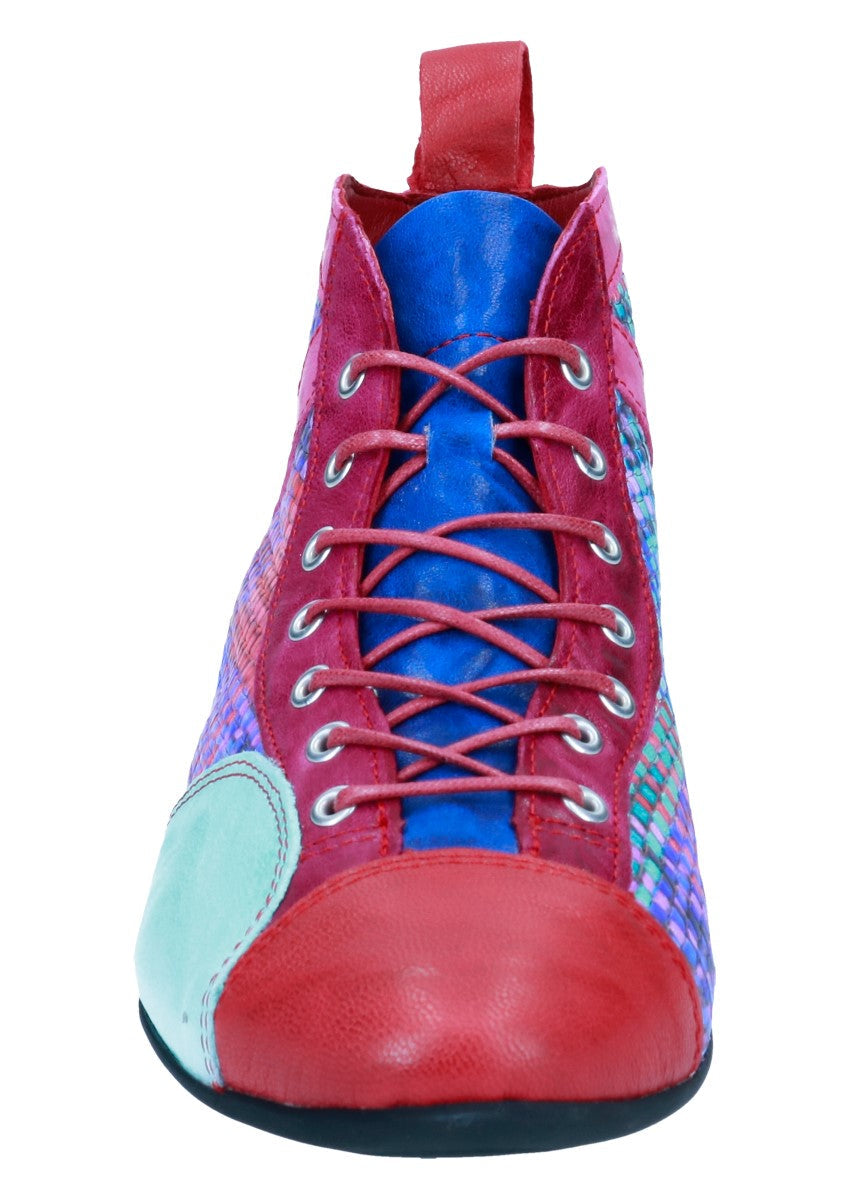 Schicke Damenstieffelette im angesagtem Design. Die Schnürung am Spann ermöglicht einen guten Halt und optimalen Sitz. Das Fußbett ist herausnehmbar, so daß auch Einlagenträger einen perfekten, weichen Auftritt haben. Think-Schuhe bestechen durch den Einsatz natürlicher Materialien und Farben und entsprechen höchsten Qualitätsansprüchen.