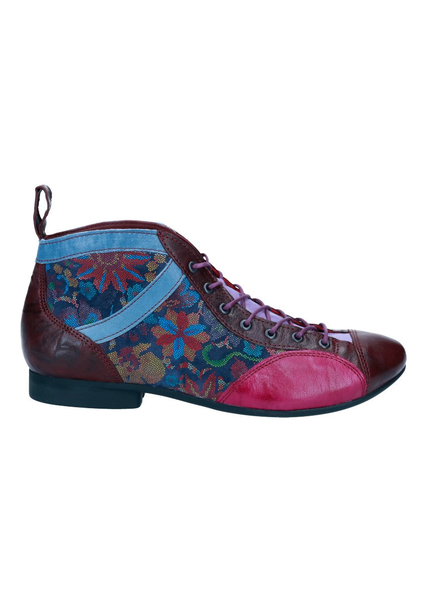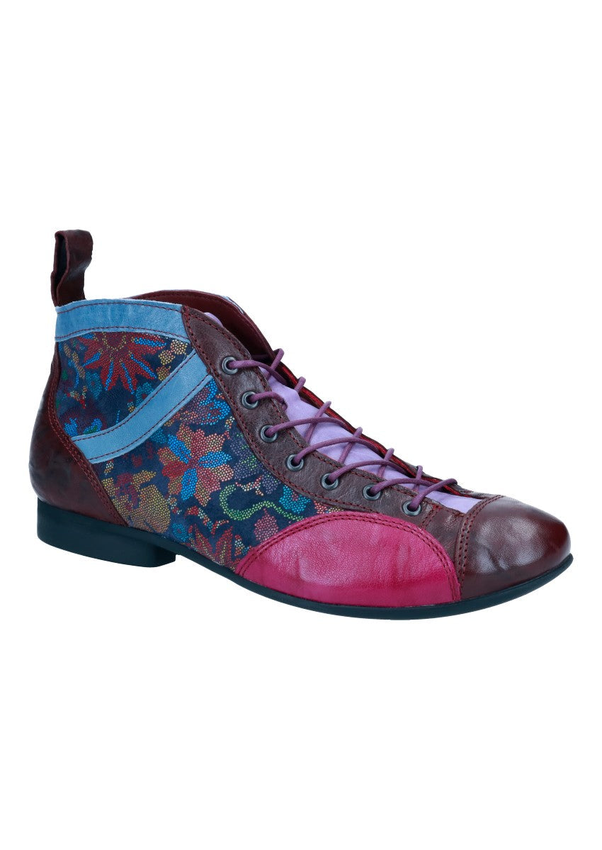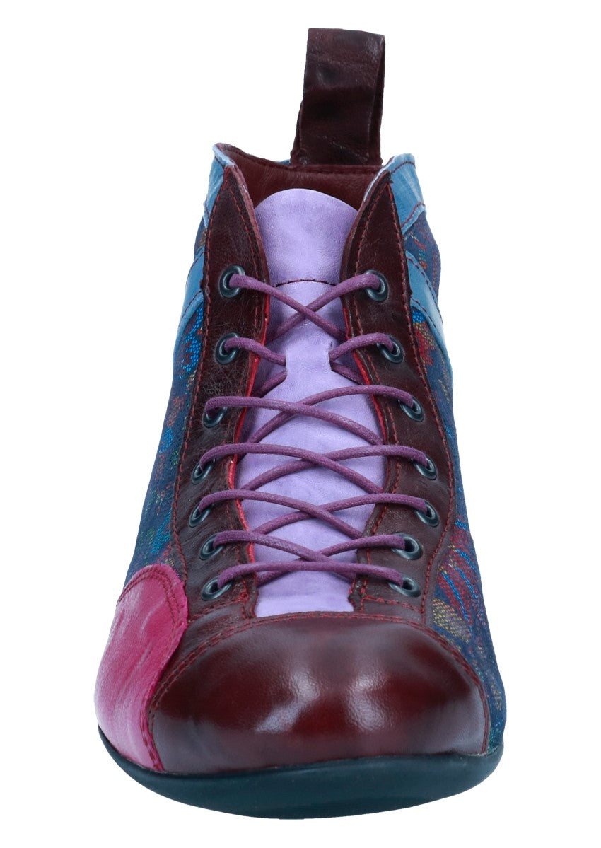 Schicke Damenstieffelette im angesagtem Design. Die Schnürung am Spann ermöglicht einen guten Halt und optimalen Sitz. Das Fußbett ist herausnehmbar, so daß auch Einlagenträger einen perfekten, weichen Auftritt haben. Think-Schuhe bestechen durch den Einsatz natürlicher Materialien und Farben und entsprechen höchsten Qualitätsansprüchen.