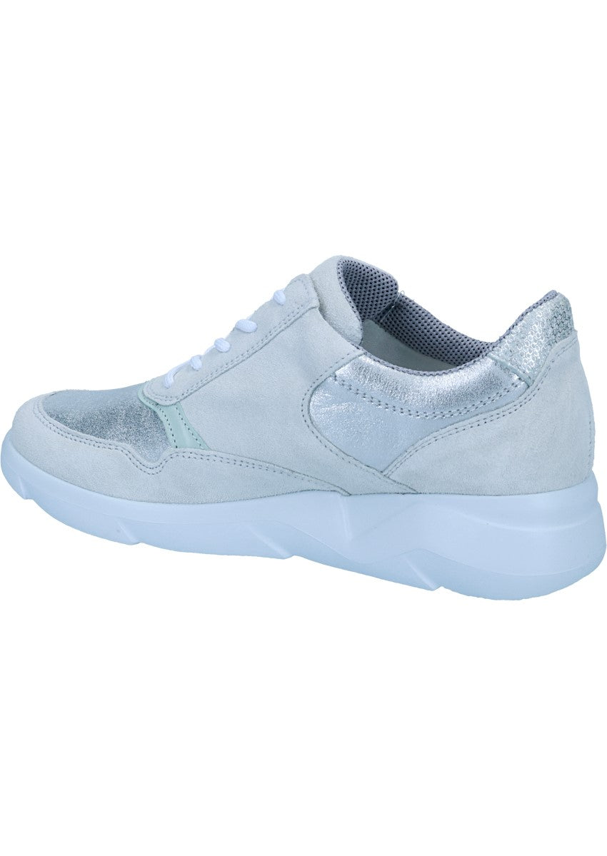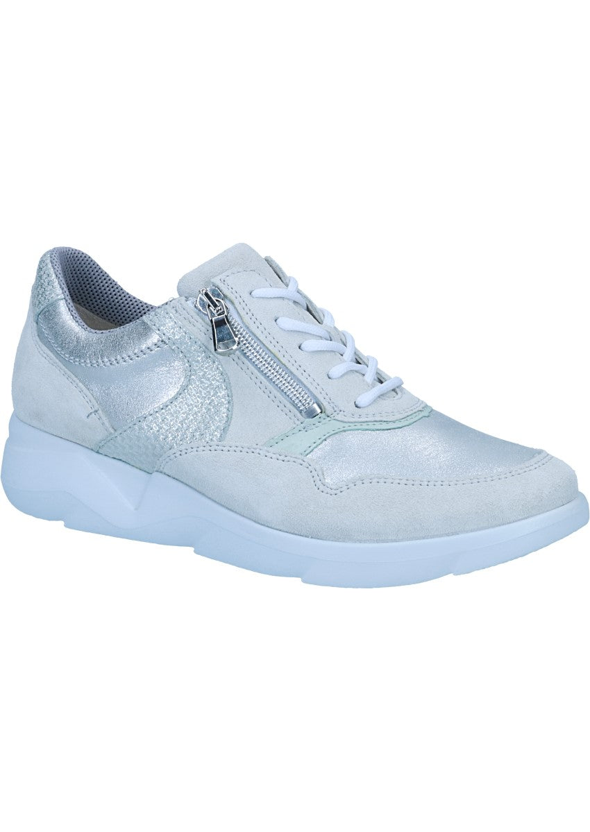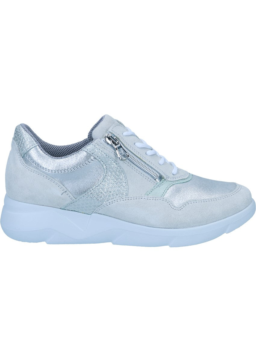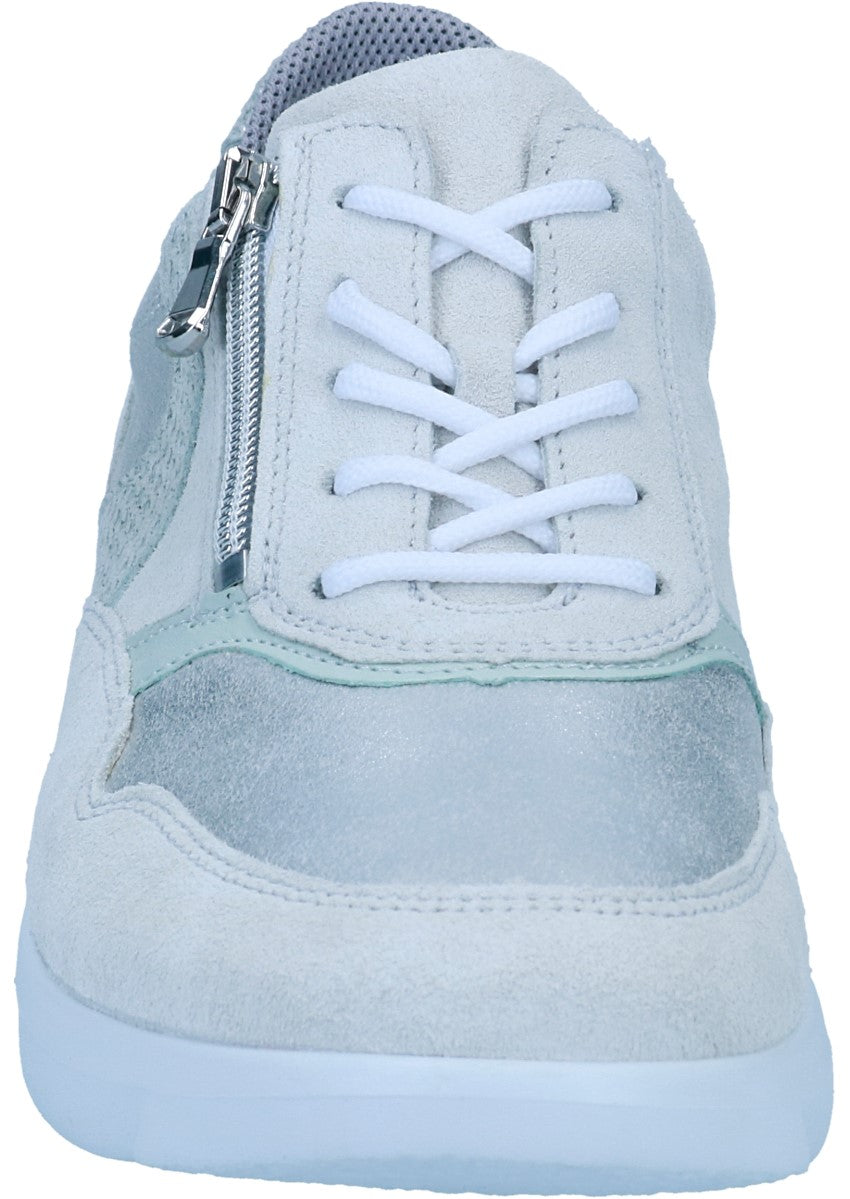 Der Sneaker "Funky" von WALDLÄUFER aus Kalbsvelours- mit Nappa- und Nubukleder und Metallic-Details. Der Schuh wird durch eine Schnürung und einen Reißverschluss verschlossen und passt dank der runden Form und der K-Weite zu vielen unterschiedlichen Fußformen. Die leichte und widerstandsfähige EVA Laufsohle ermöglicht ein angenehmes Gehen ohne müde Füße.