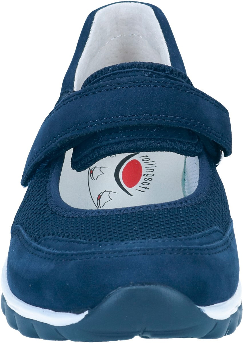 Riemchenballerina mit regulierbarem Klettverschluss und herausnehmbares Wechselfußbett. Rollingsoft ist eine innovative Technik, die das Gehen erleichtert: Eine spezielle, abgerundete Sohle sorgt für eine verbesserte, natürliche Abrollbewegung, die Rücken und Gelenke schont. Seitliche Stabilisatoren ermöglichen außerdem einen sicheren Gang - mit deutlich reduzierter Umknickgefahr. So tun Sie etwas für Ihre Gesundheit und ein modisches Outfit!