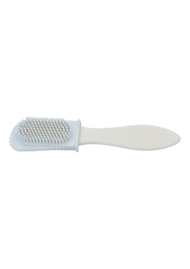 Sanft reinigende Raulederbürste mit synthetischen Borsten, praktischer Reinigungskante und Gummi-Noppen zum Aufbürsten und Aufrichten der Lederfasern.